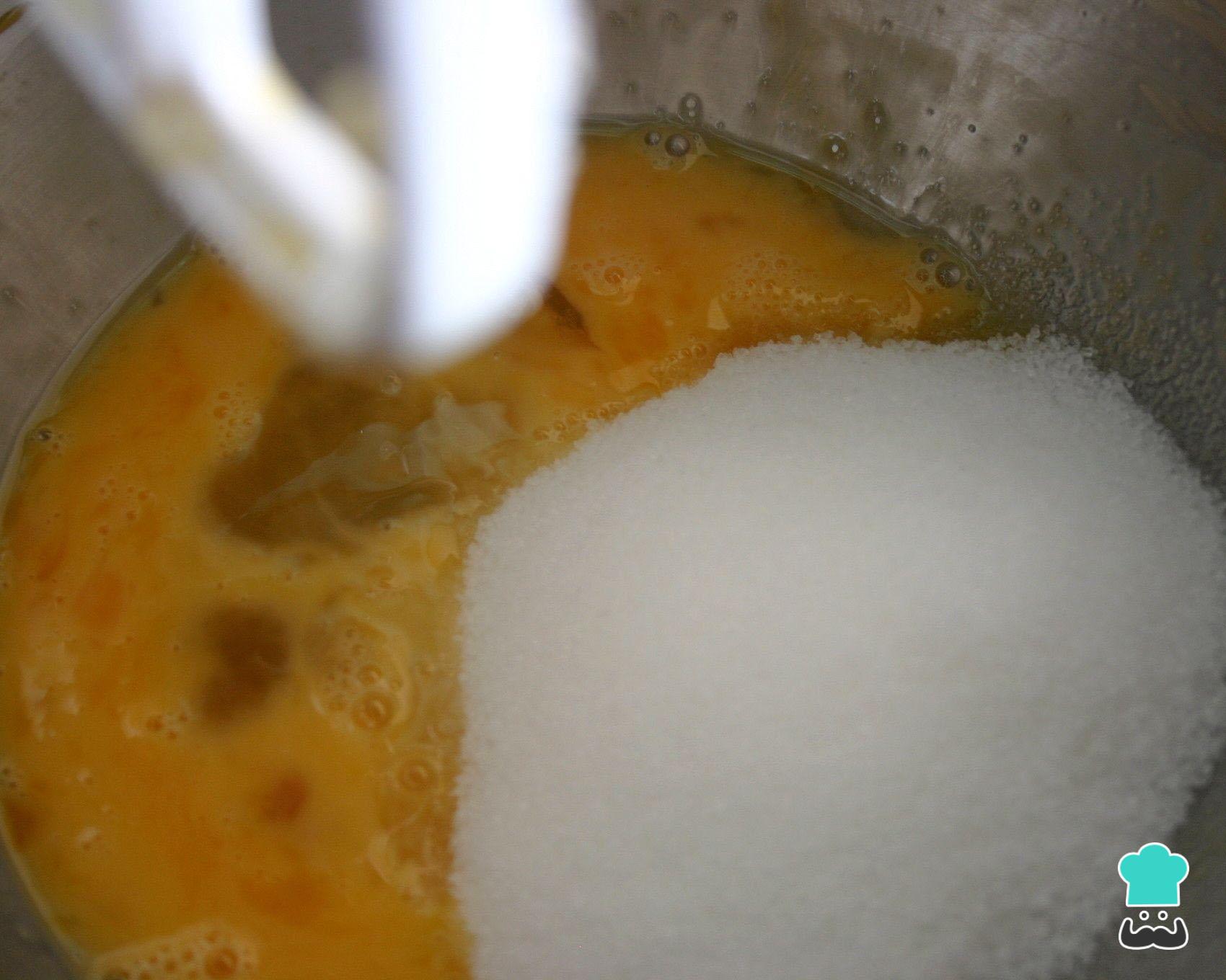 Comece batendo o açúcar com os ovos e a manteiga usando uma batedeira. Bata muito bem até obter um creme lisinho, isso é importante para a massa do bolo ficar com a consistência certa.
