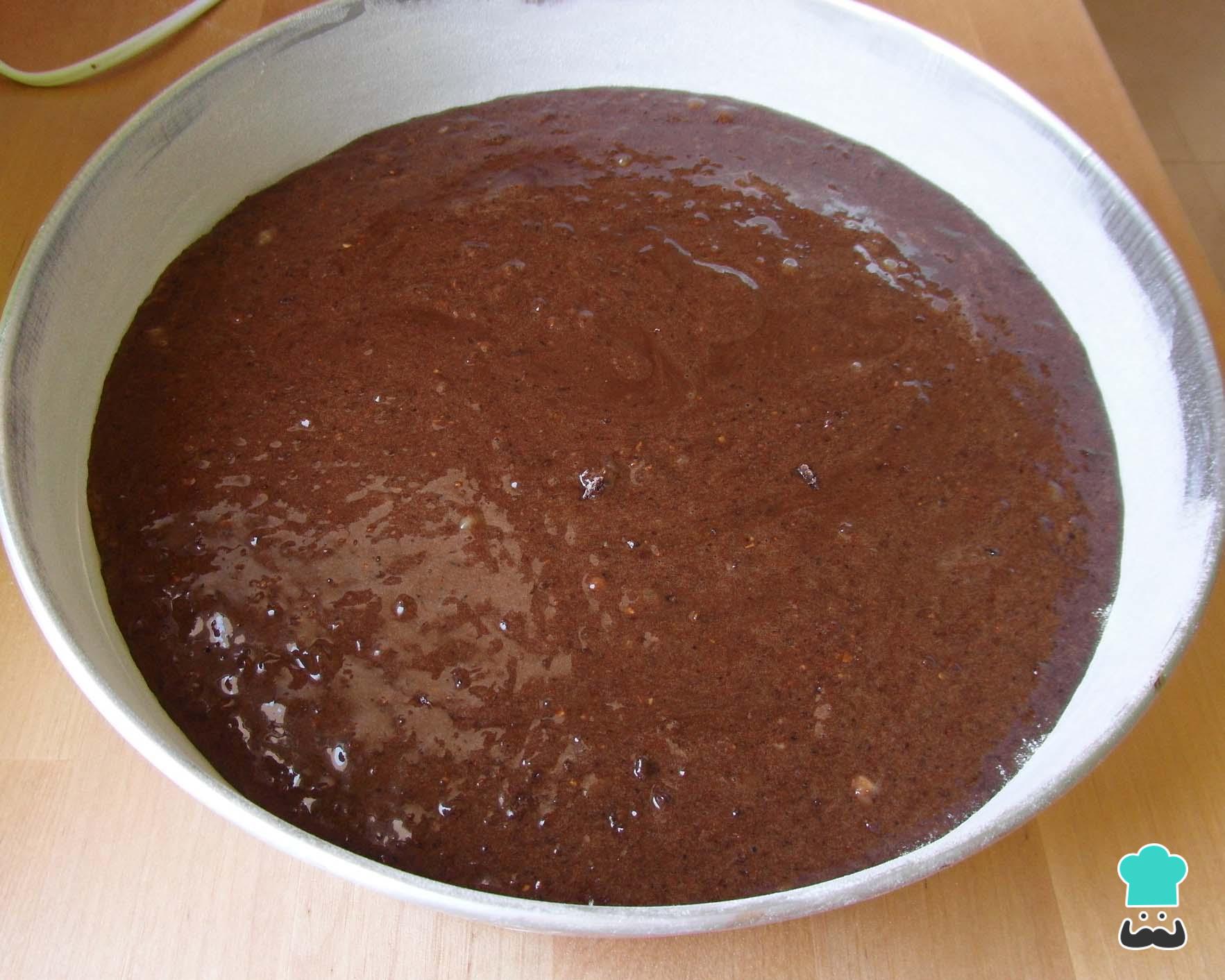 Leve ao forno pré-aquecido e asse durante 45-50 minutos ou até o palito sair limpo. Retire, deixe esfriar um pouco e desenforme sobre uma grelha, para terminar de esfriar sem ficar úmido em baixo.