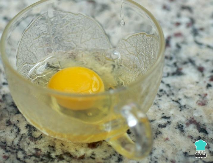 Para fazer o bolo de chocolate de xícara você deverá usar, de preferência, uma xícara grande (300 ml). Coloque nela o ovo e bata com um garfo.