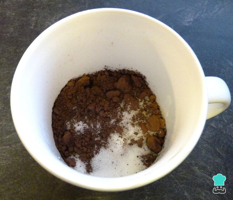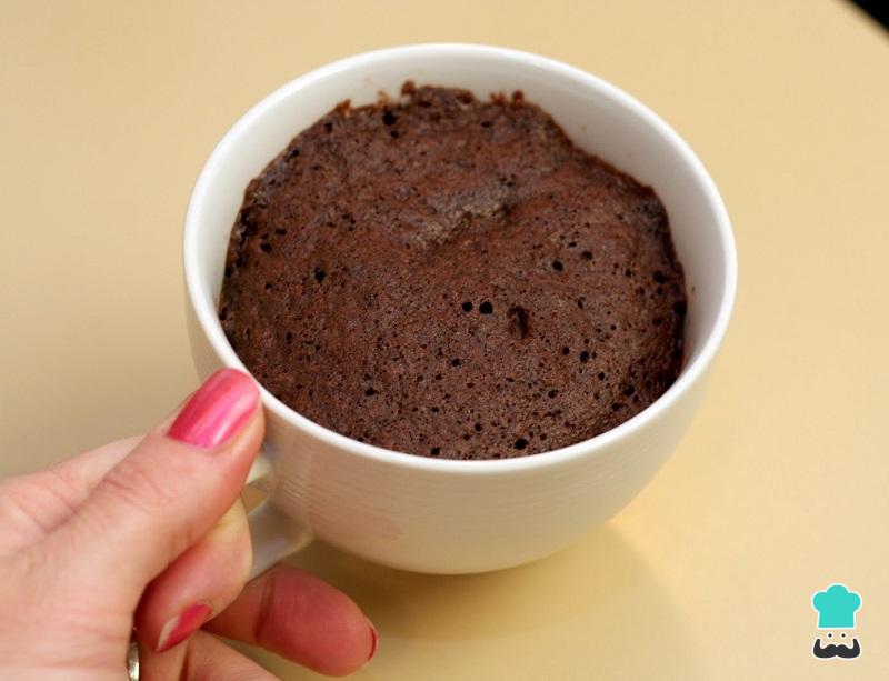 O passo seguinte é o que tornará a massa num verdadeiro bolo de chocolate de xícara! Leve-o ao microondas por 3 minutos na potência máxima, deixe esfriar e está pronto!