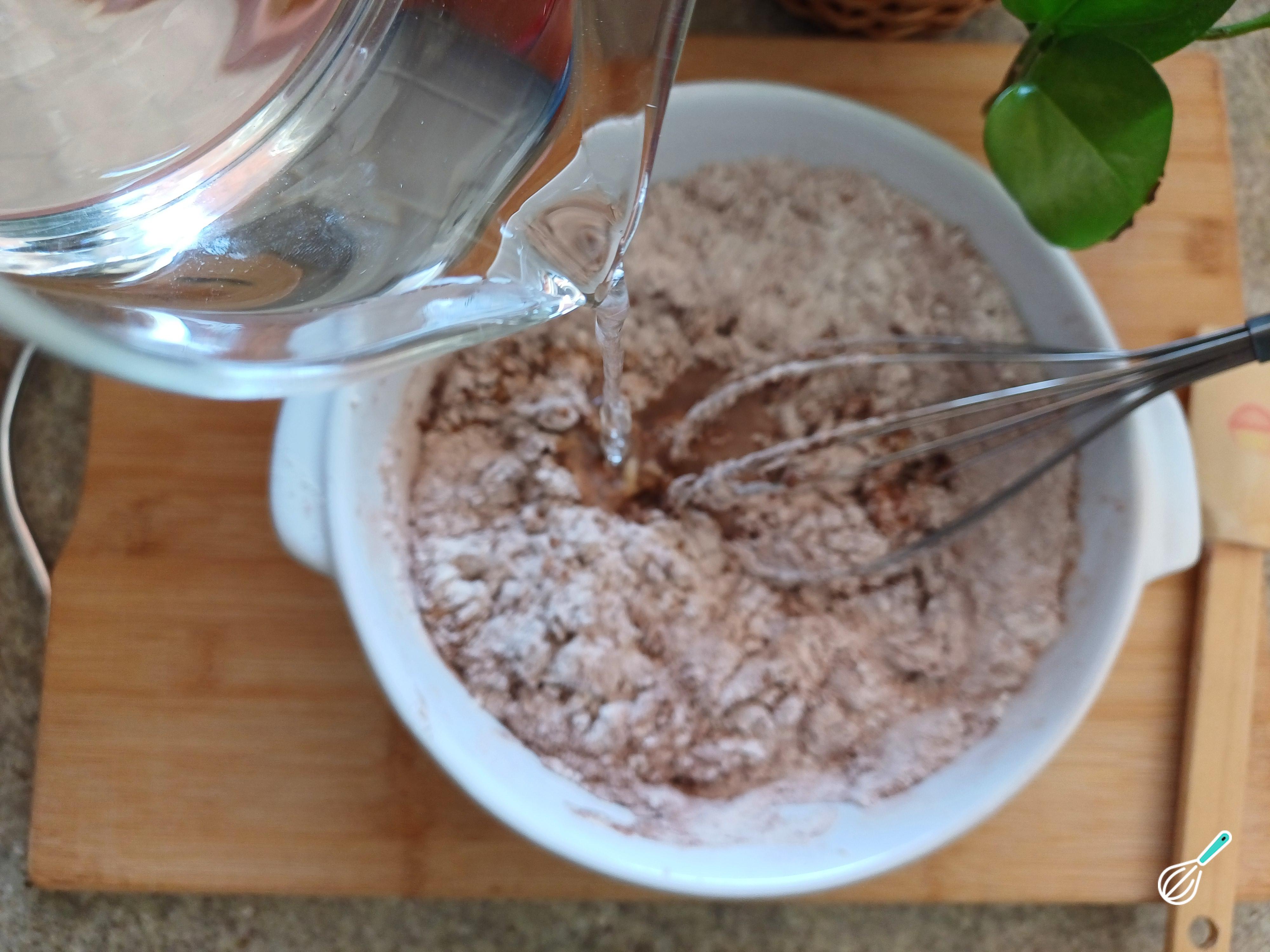Acrescente aos poucos a água morna até formar uma mistura homogênea.