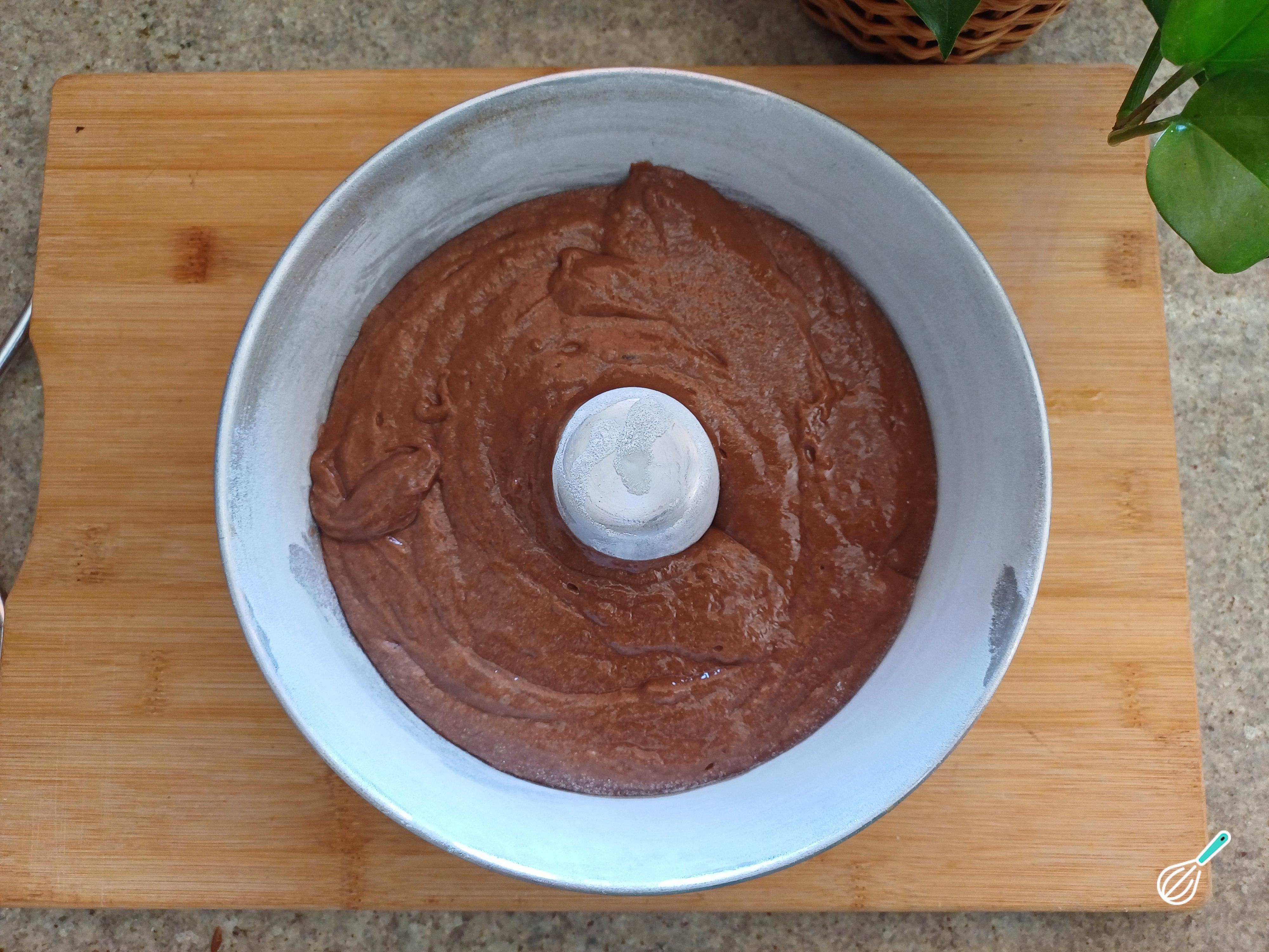 Se quiser pode preparar uma cobertura simples com cacau um pó, adoçante e creme de leite leve, misturando os ingredientes até obter uma consistência cremosa.