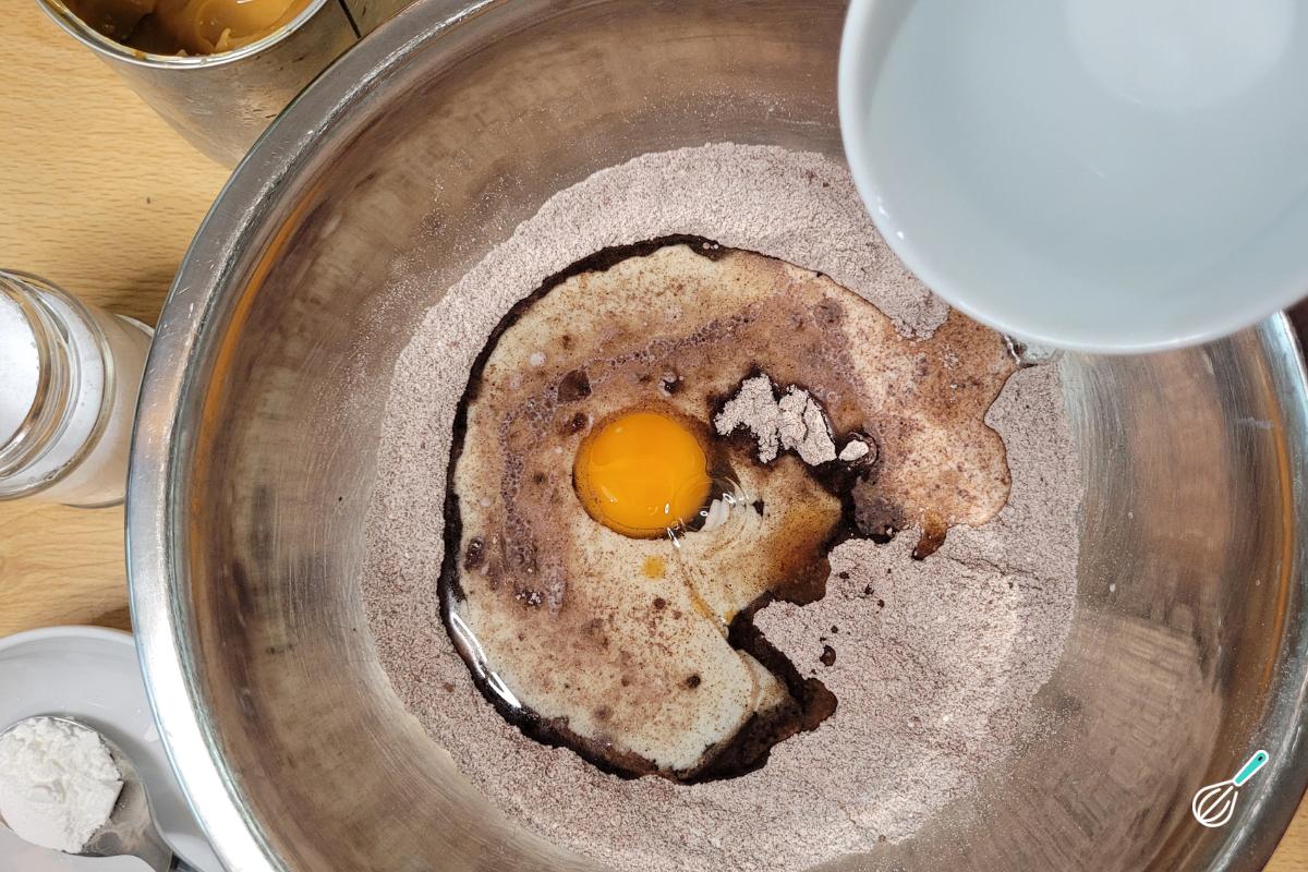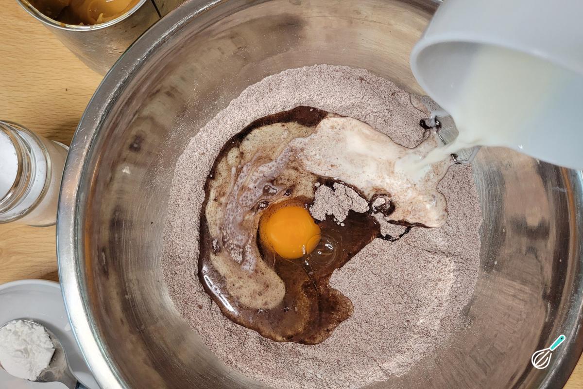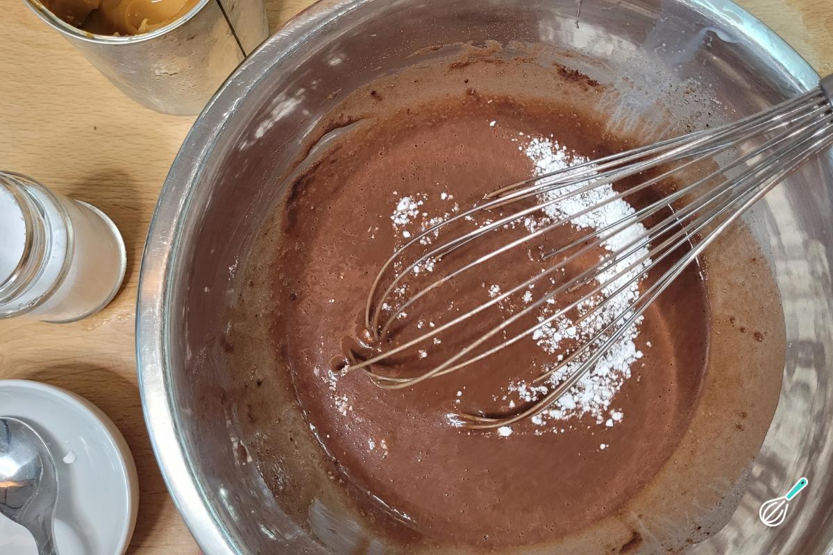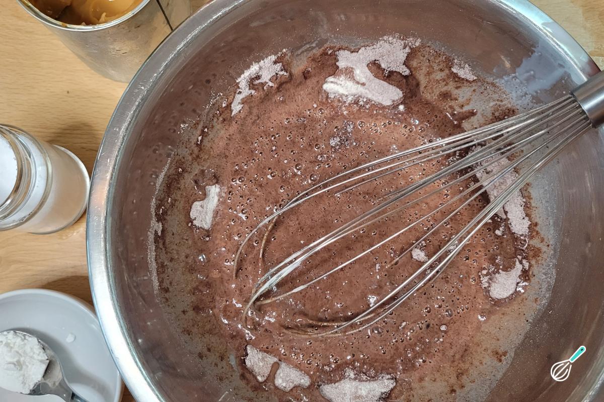 Misture bem para quebrar eventuais pedrinhas de farinha ou do cacau.