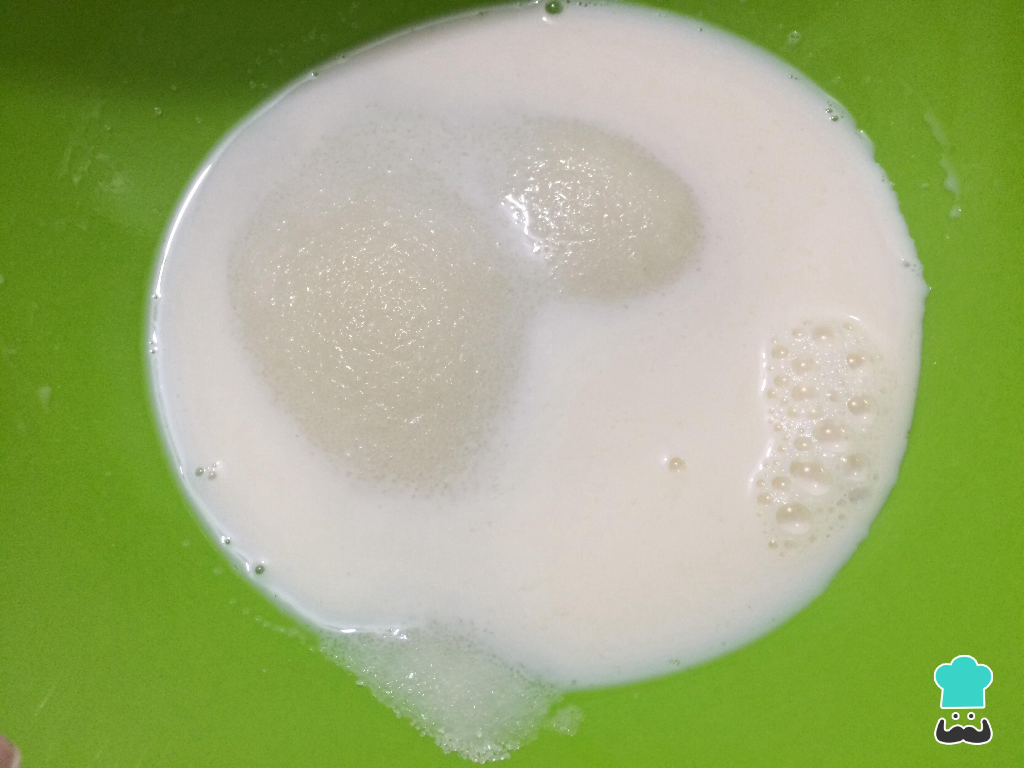 Em uma tigela misture o leite com o açúcar até o dissolver por completo.