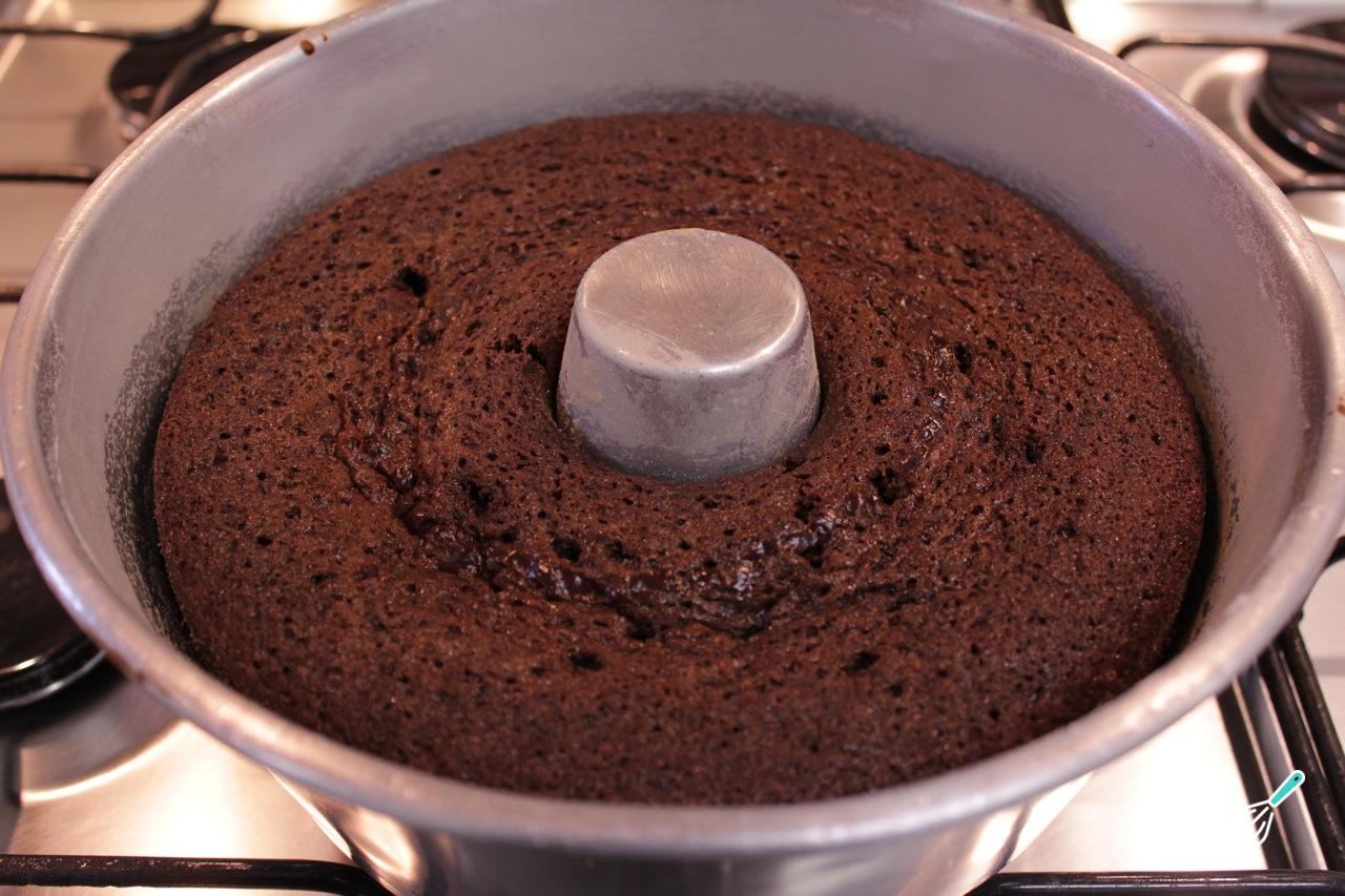 Despeje a massa do bolo em uma forma previamente untada e asse no forno por 30 minutos a 240 ° C. Lembre-se não abrir o forno durante os primeiros 15 minutos de cozimento. Para verificar o ponto de cozimento, faça o teste do palito.