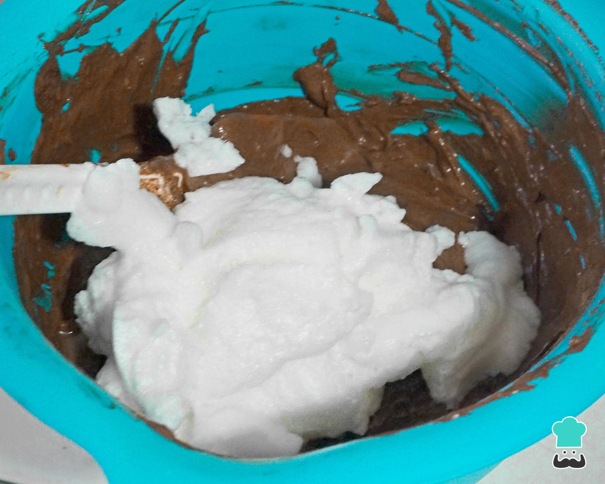 Finalmente adicione as claras, pouco a pouco, incorporando-as na massa do bolo de chocolate em movimentos envolventes, para que não percam o ar.
