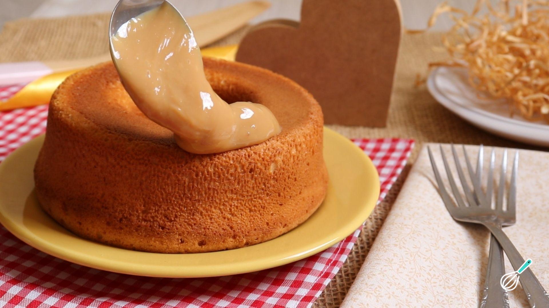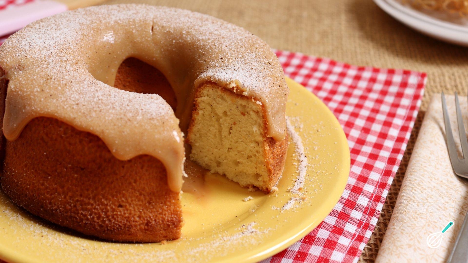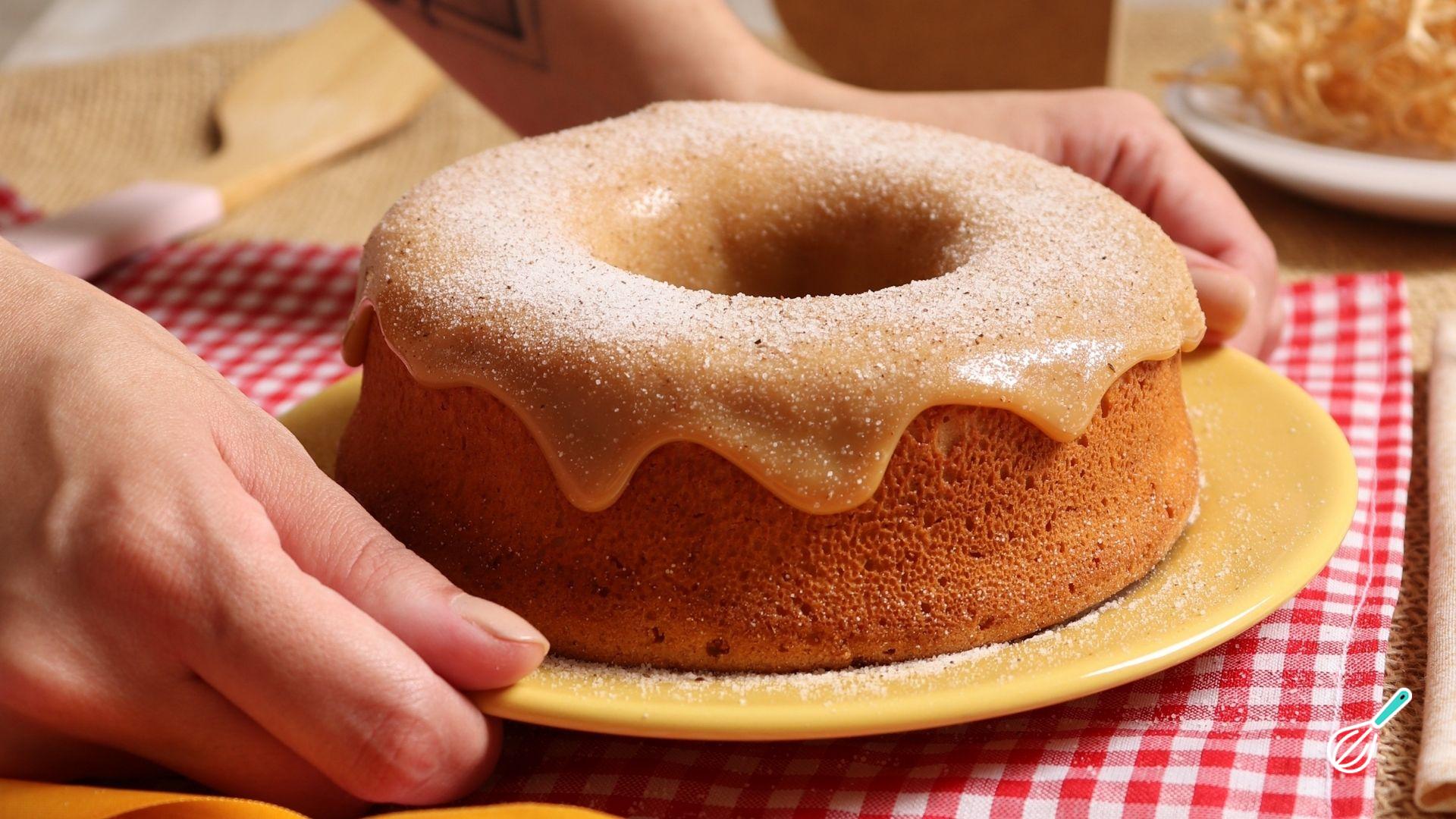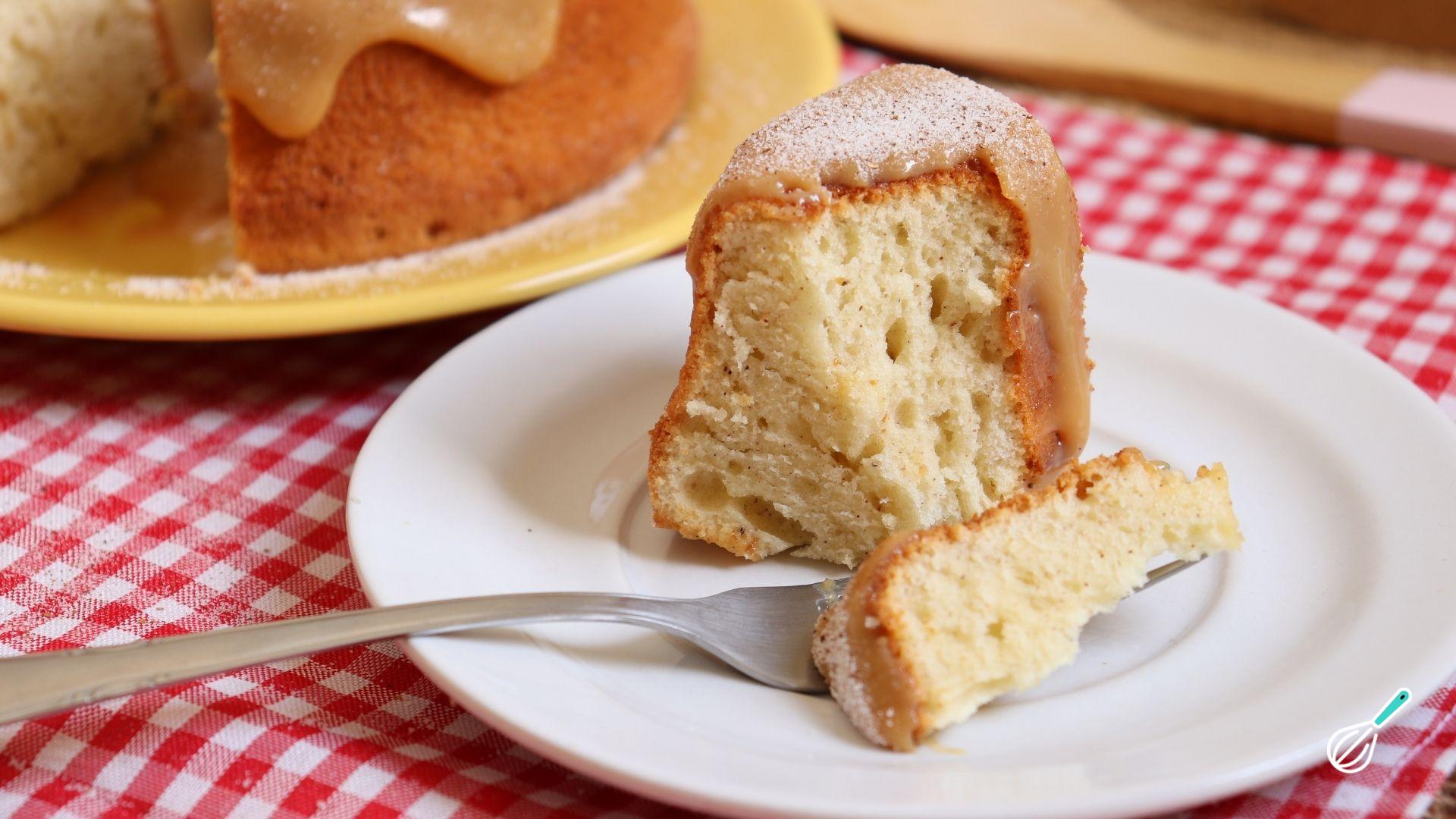 Esse bolo traz na massa extrato de baunilha e canela e, na cobertura, doce de leite cremoso e uma mistura de açúcar e canela. Super aromático, este bolo resulta de uma combinação perfeita de sabores e texturas!