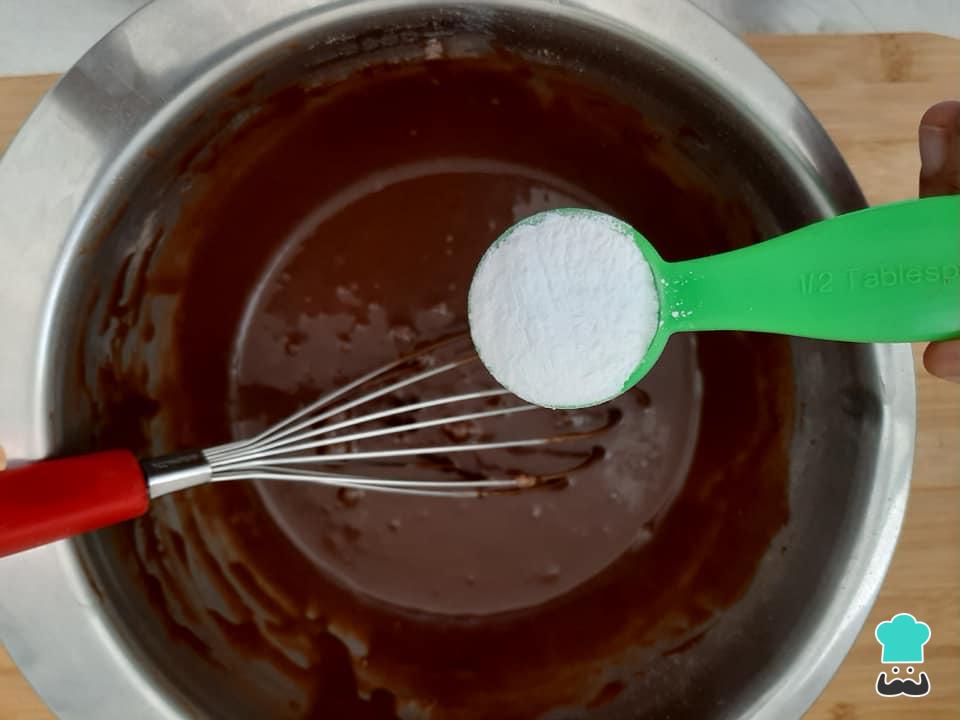 Por último, acrescente o fermento em pó e misture delicadamente.