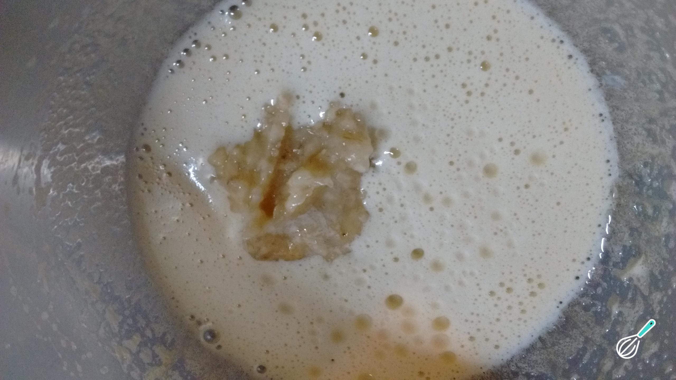 Adicione a banana amassada e o óleo e bata por mais alguns minutos.