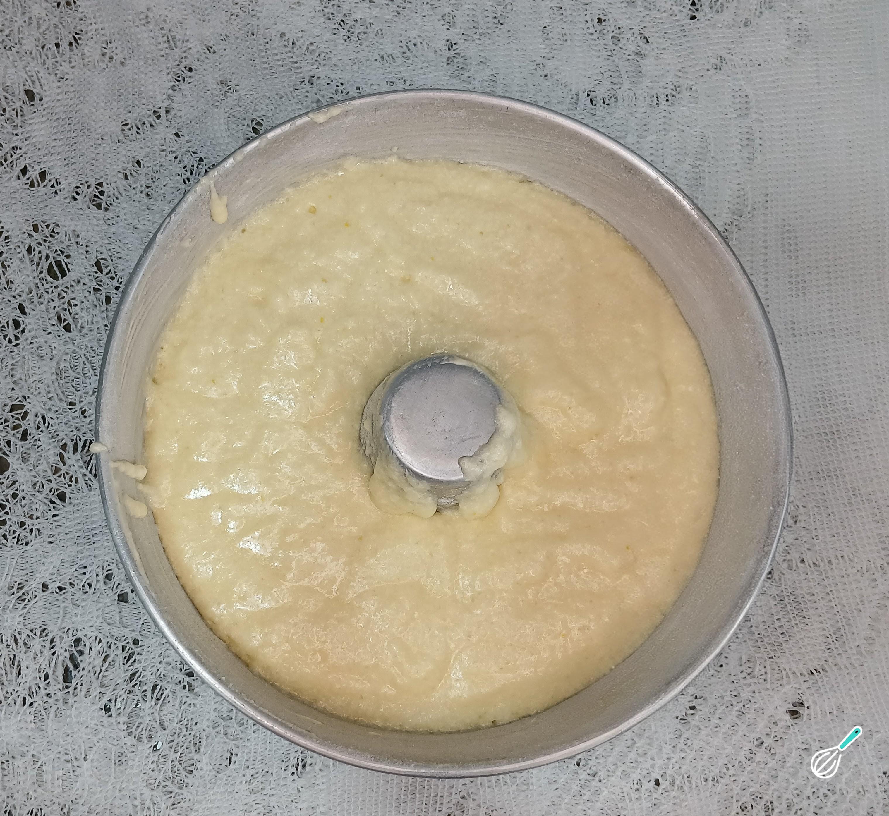 Transfira a massa para a forma já untada e enfarinhada e pré-aqueça o forno a 200 graus. Leve o bolo para assar por aproximadamente 20 minutos e faça o teste do palito para ver se realmente esta assado. Estando assado, desligue e espere esfriar para desenformar.