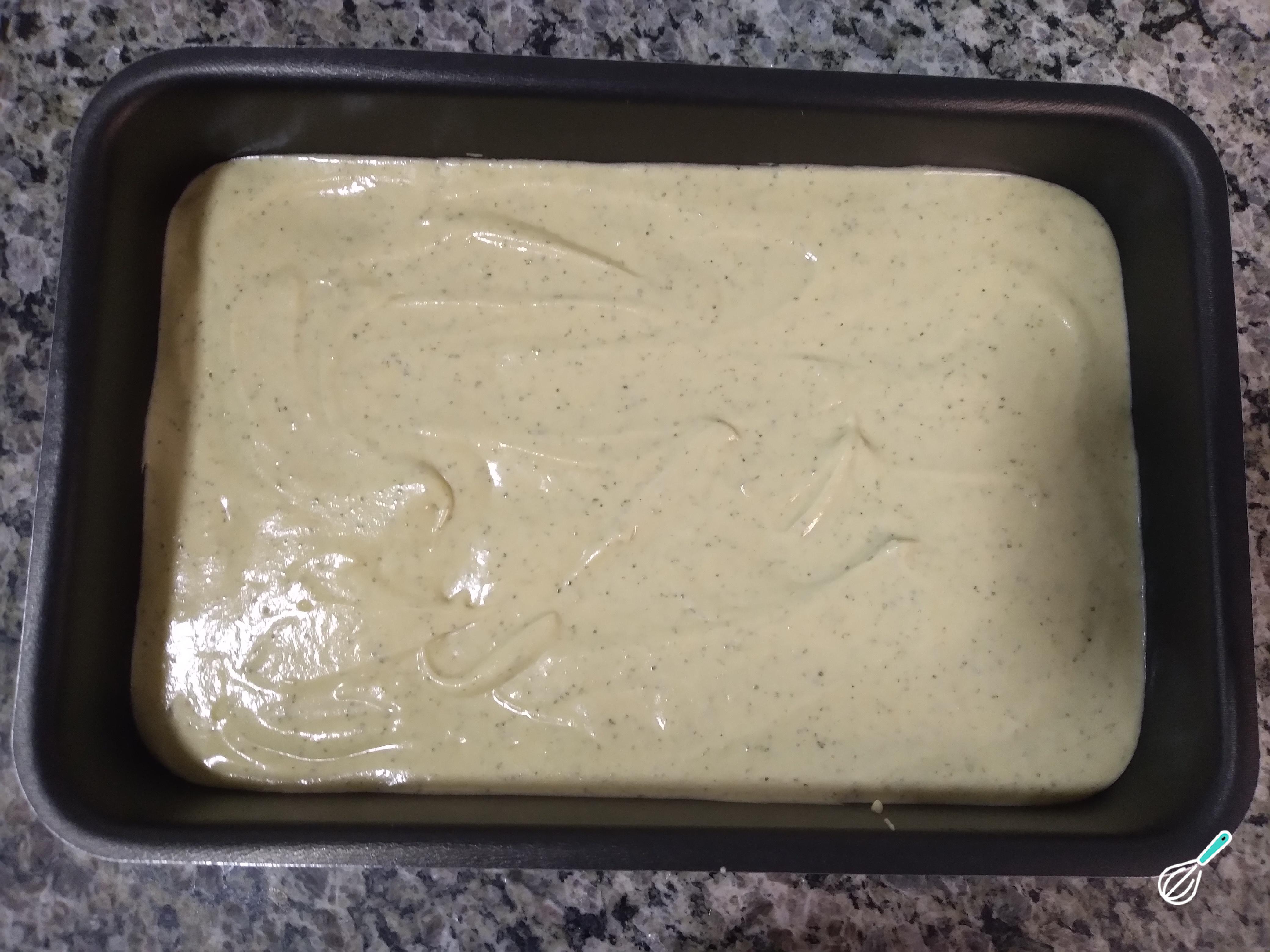 Por último, acrescente o fermento químico e misture delicadamente. Preaqueça o forno a 200 graus e unte uma forma para assar o bolo.