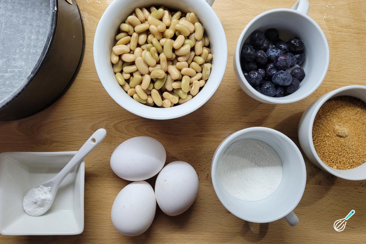 Separe os ingredientes para fazer seu bolo de feijão. Aqui usei feijão branco cozido, mas pode usar qualquer um que tiver na geladeira, até mesmo feijão preto ou vermelho - só vai mudar a cor do bolo. Apenas atente-se a usar um feijão sem tempero.
