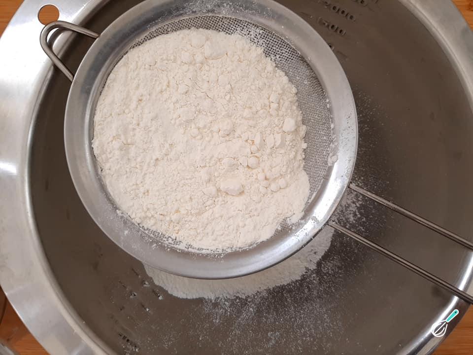 Dica: peneirar o trigo é mais um dos truques para conseguir um bolo fofinho e crescido, por isso não pule este passo!