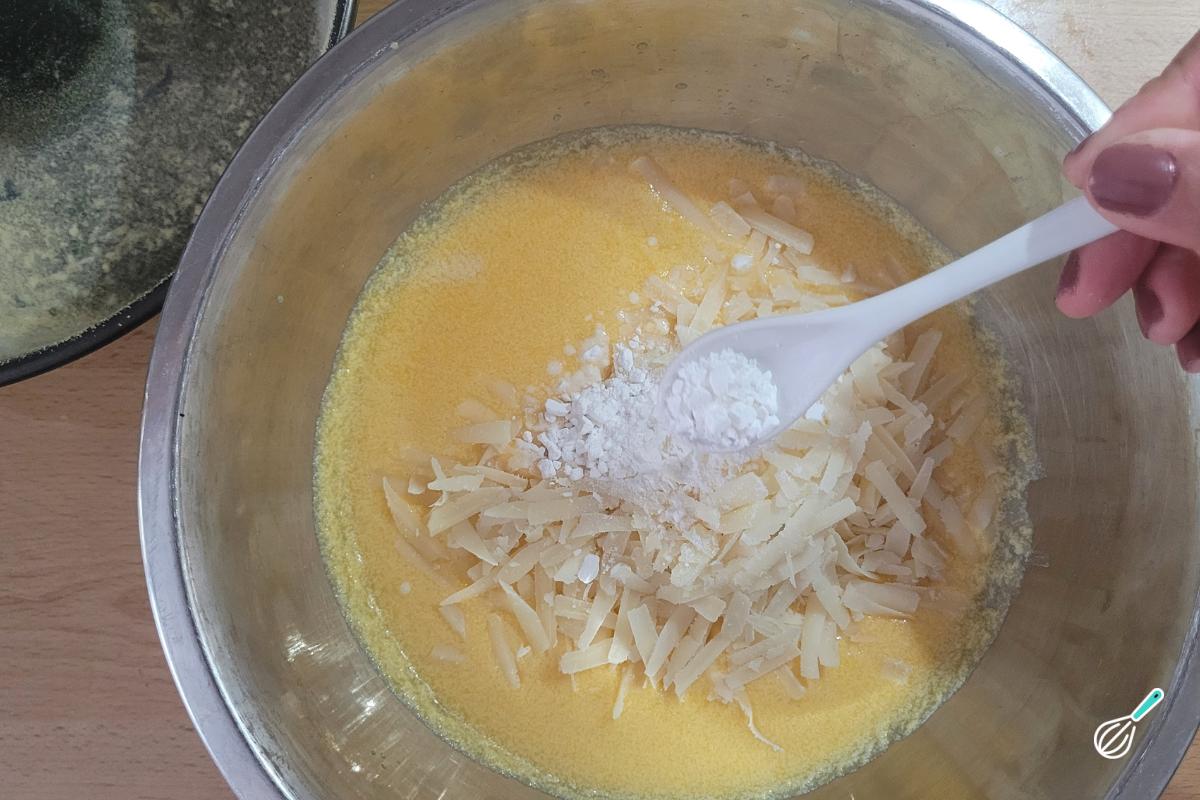 Se sua manteiga não estiver no ponto, derreta no microondas e use a manteiga derretida. Aqui usei o queijo parmesão, mas pode usar um queijo meia cura também. Gosto de usar o queijo ralado na hora na parte mais grossa do ralador para dar mais textura no bolo.