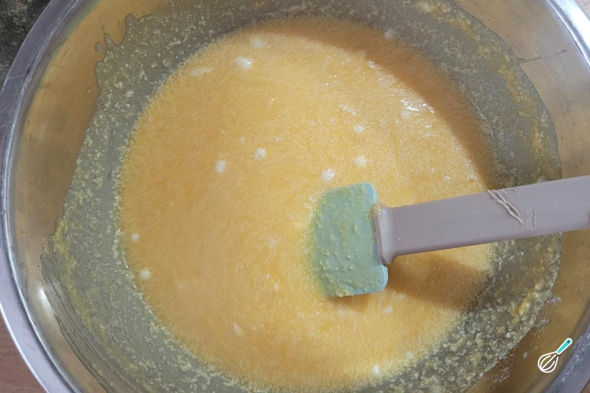 Adicione a manteiga, o açúcar e por último, coloque o fubá. Em algumas versões, adiciona-se também o queijo ralado no liquidificador, mas eu prefiro adicionar o queijo ralado sem bater depois, porque acho que fica ainda mais cremoso e com alguns pontinhos de queijo no meio da massa.