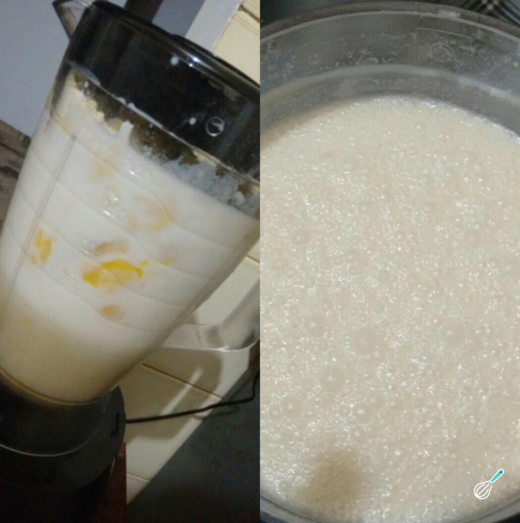 Coloque os ingredientes no liquidificador, um a um, e bata até obter uma massa líquida e homogênea.