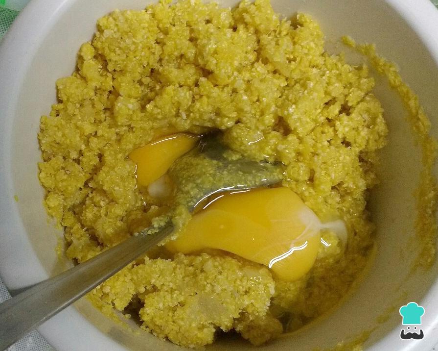 Misture todos os ingredientes deste bolo de fubá caseiro numa tigela ou no liquidificador e em último lugar misture o fermento.