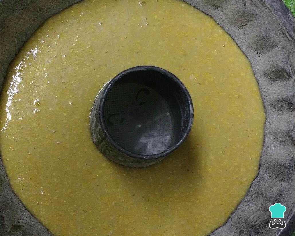 Coloque a massa num forma de bolo untada e enfarinhada.
