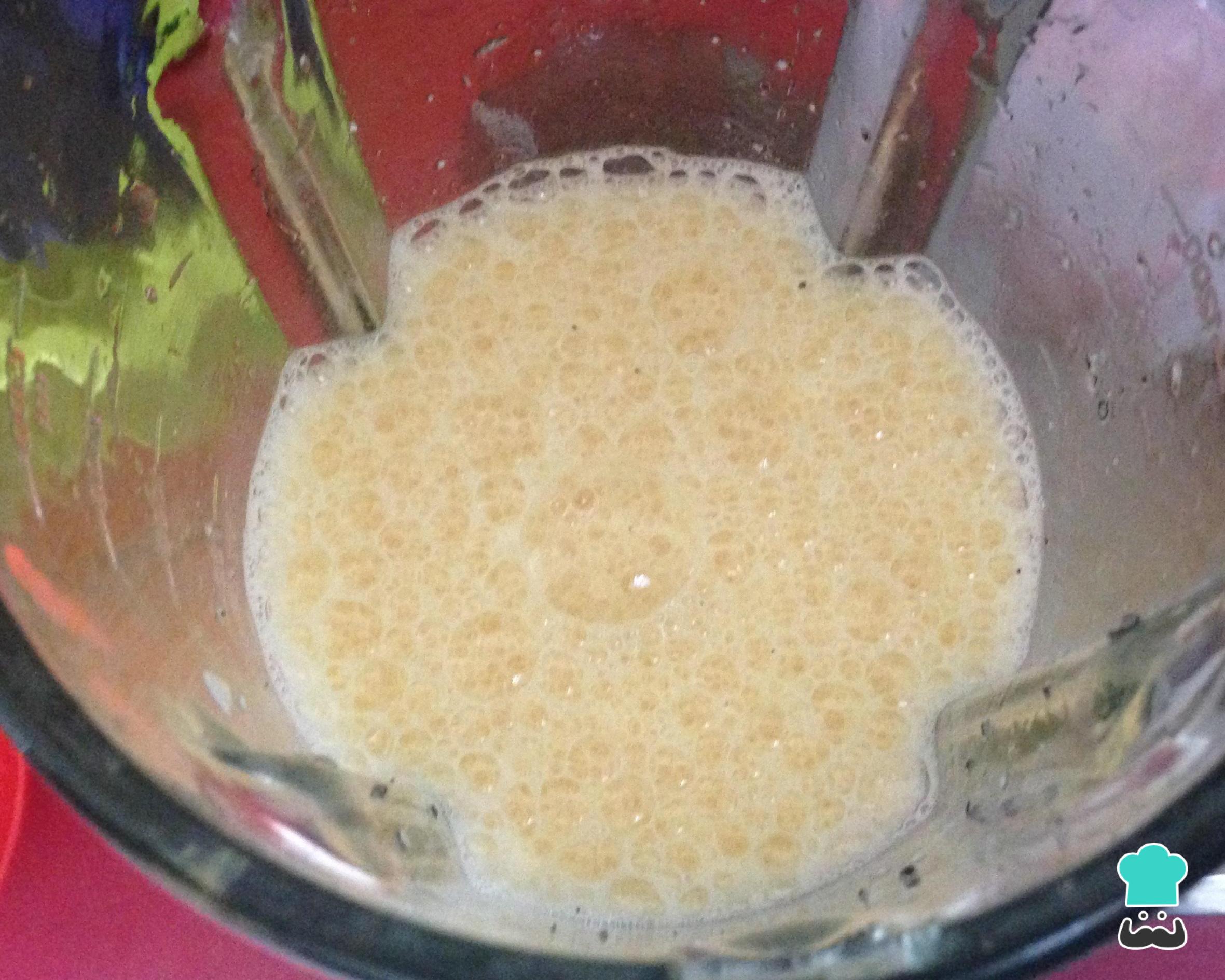 Bata no liquidificador os ovos com adoçante até espumar. Coloque o fubá e o leite e a manteiga e bata até misturar bem, uns 3 minutos.
