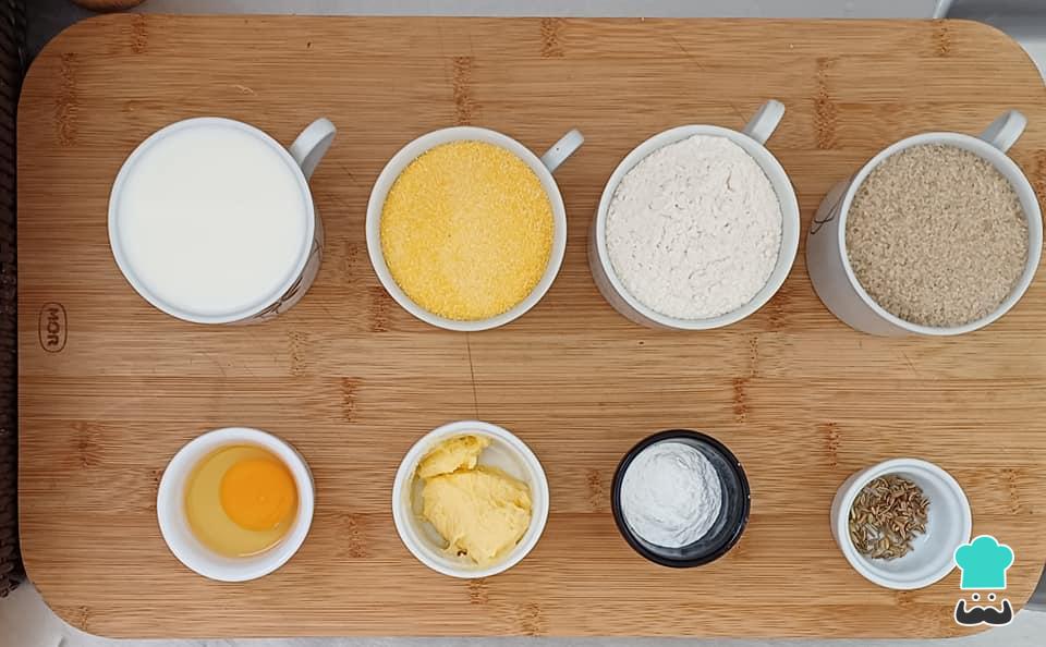 Separe os ingredientes necessários para preparar o bolo de fubá na airfryer.