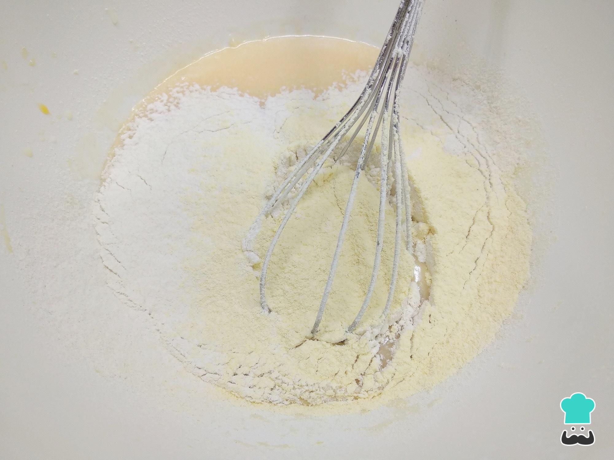 Acrescente a farinha de trigo e o fubá peneirados e envolva bem, até incorporar completamente. Mais uma vez, você pode fazer isso numa tigela ou no liquidificador, como preferir.