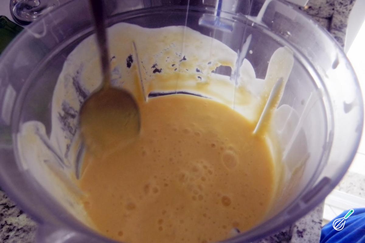 O primeiro passo é reunir todos os ingredientes e colocá-los no liquidificador. Bata tudo por alguns minutos até obter uma massa cremosa e homogênea, sem gruminhos.