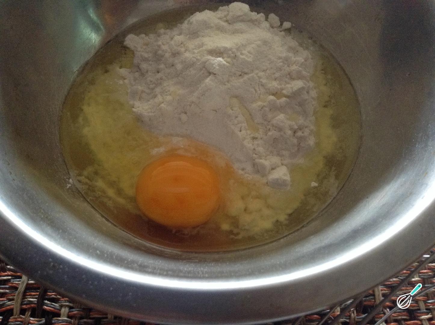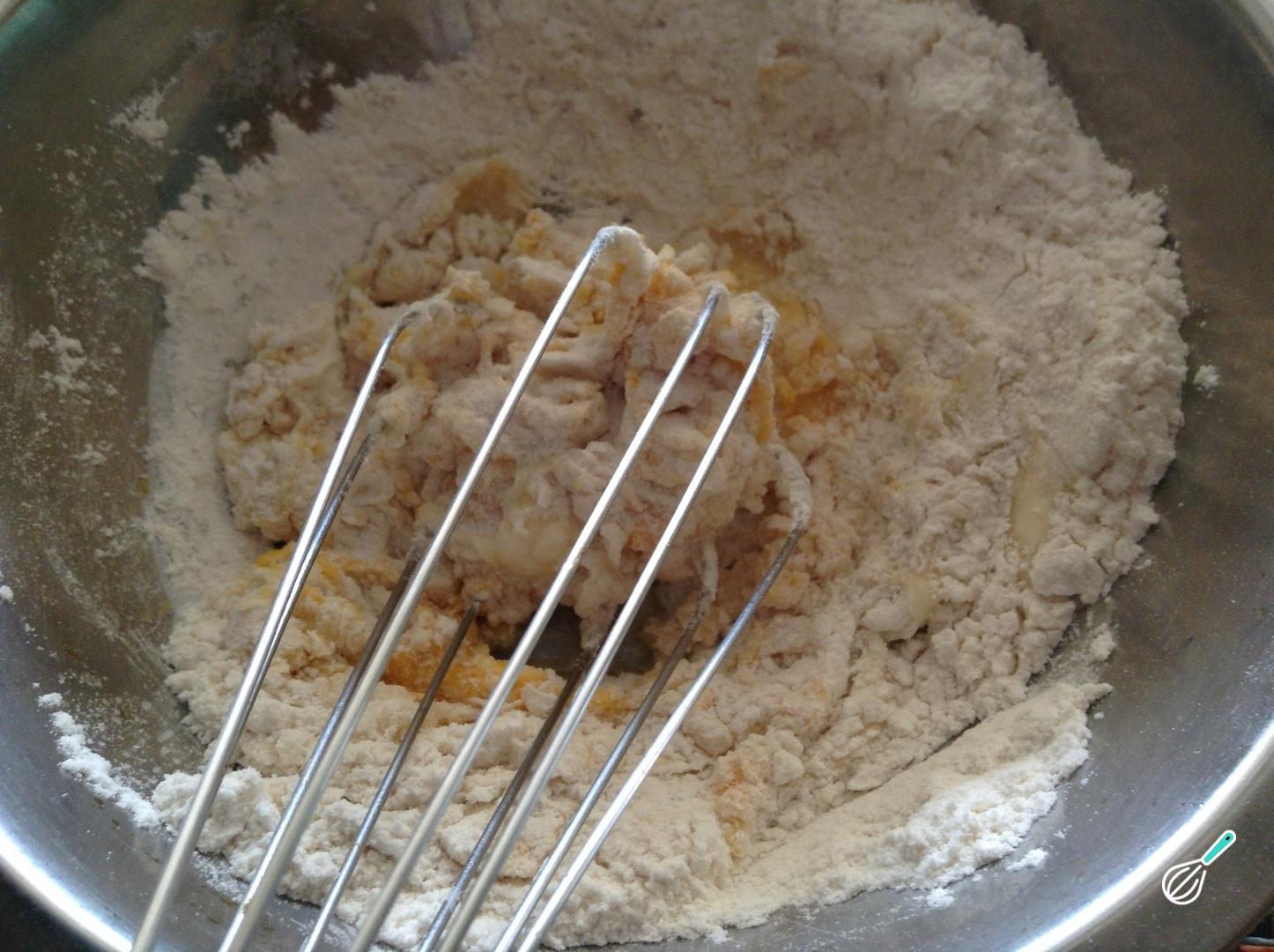 Em uma tigela misture a farinha e ovos, até ficarem completamente integrados.