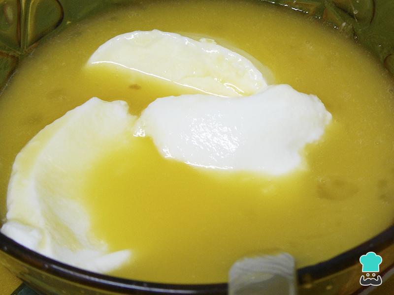 Em seguida, integre o iogurte na mistura com a ajuda de uma colher ou de um fouet. Misture delicadamente com movimentos envolventes.