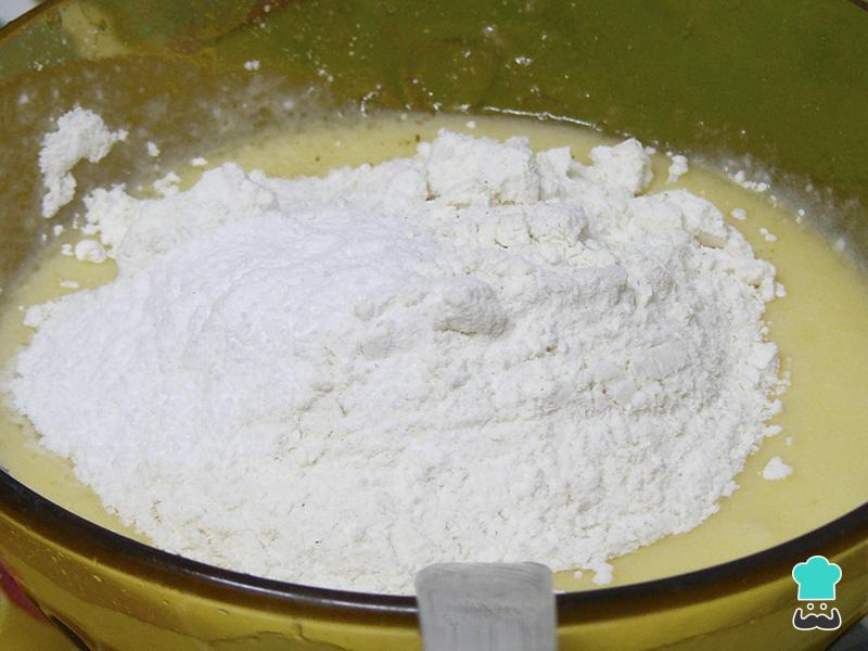 Adicione na tigela a farinha e o fermento, previamente peneirados. Misture primeiro com movimentos envolventes e, quando ganhar consistência, bata na batedeira para incorporar ar.