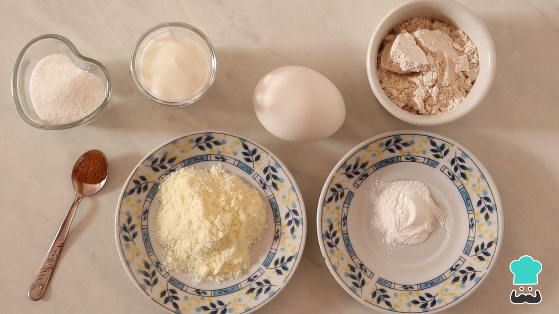 Separe os ingredientes para fazer esse bolo de iogurte saudável. Importante: o ovo deve estar em temperatura ambiente e você pode trocar o açúcar refinado por adoçante se preferir.