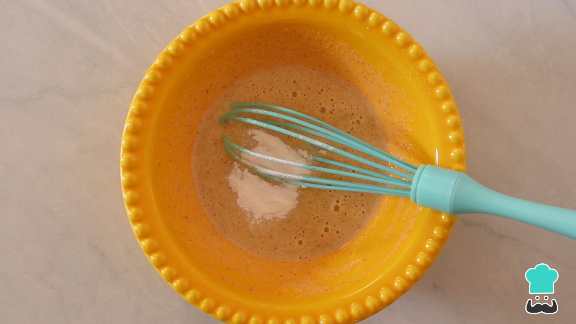 Misture bem até formar uma mistura homogênea e finalize com o fermento, mexendo delicadamente só até incorporar na massa.