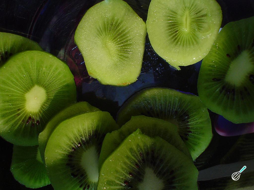 Depois do bolo cozido, deixe esfriar um pouco. Enquanto esfria, corte os kiwis às rodelas e junte o mel.