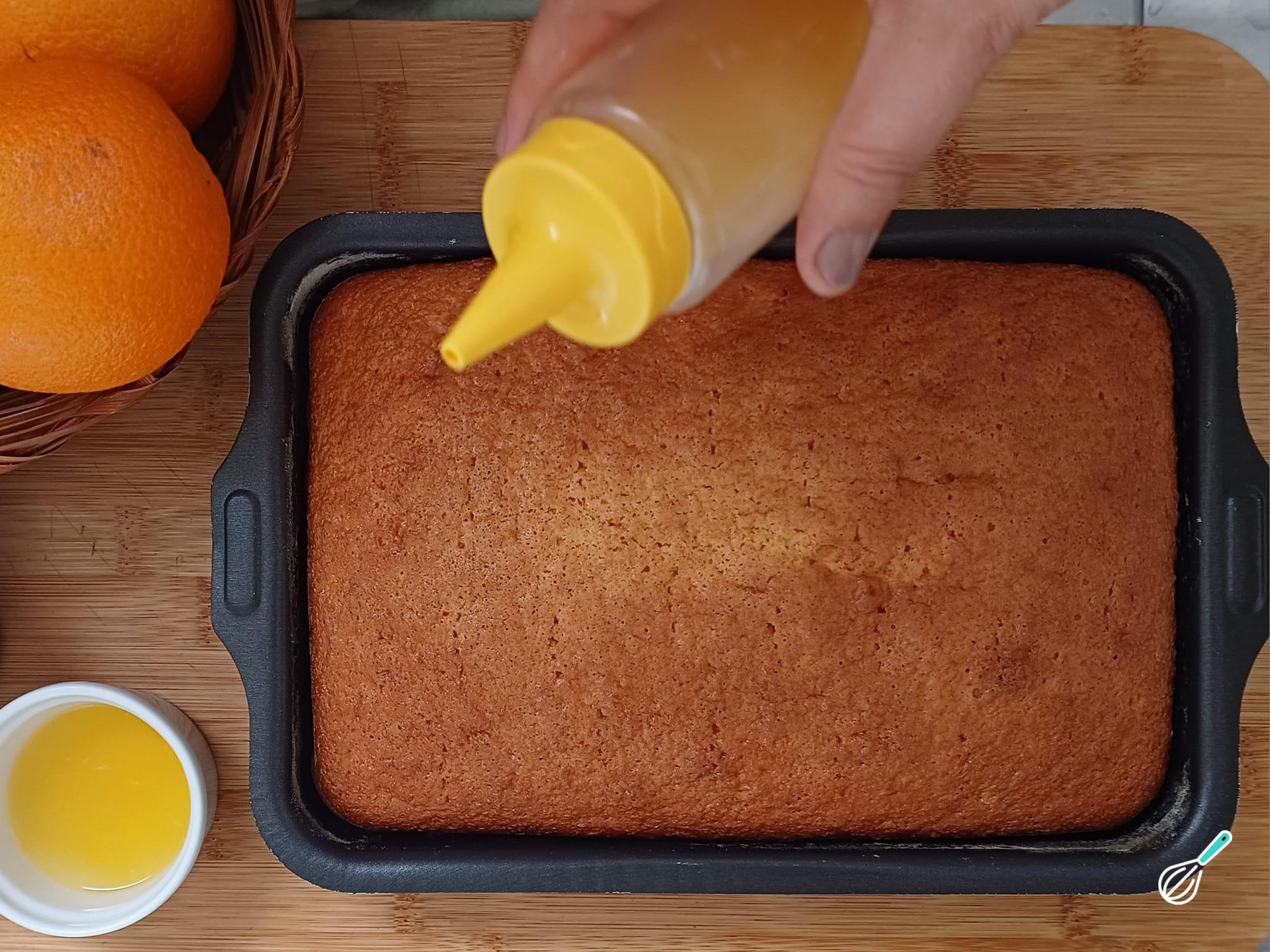 Prontinho! Agora você já pode servir seu bolo fofinho de laranja com calda açucarada!