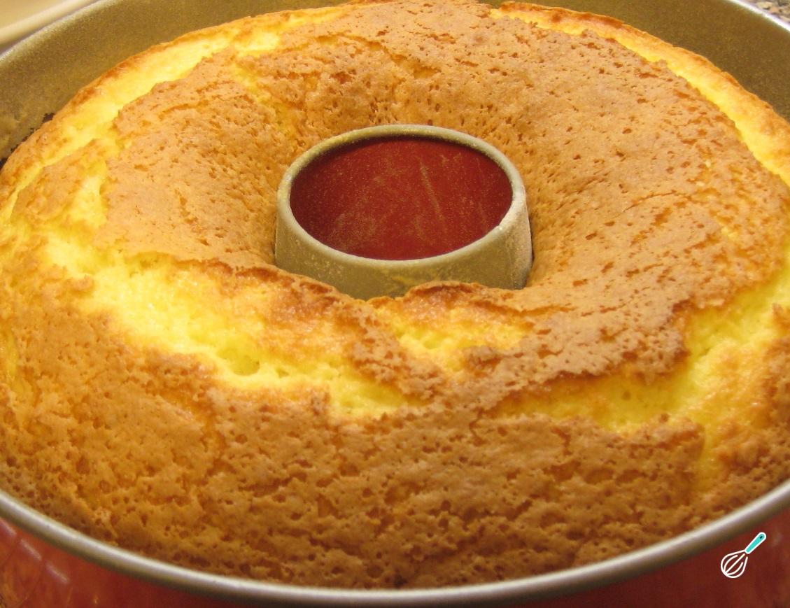 Unte e enfarinhe uma assadeira com furo no meio. Despeje a massa e leve ao forno pré aquecido por 40 minutos até o bolo ficar dourado.