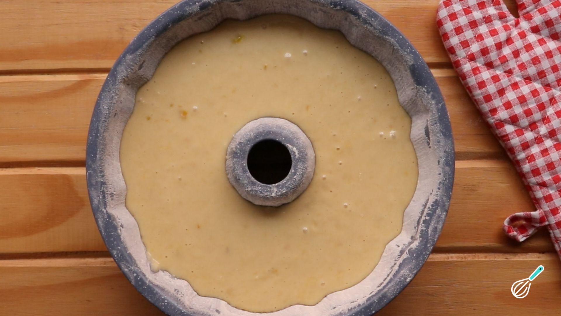Despeje em uma forma untada e enfarinhada e leve para assar em forno preaquecido a 180 graus por 40 minutos ou até dourar.
