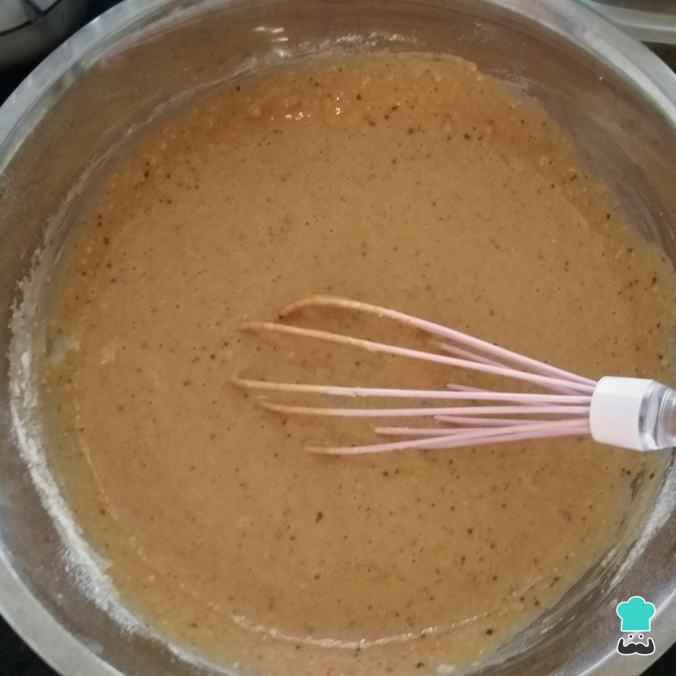 Adicione a mistura do liquidificador na tigela dos secos e mexa até misturar completamente.