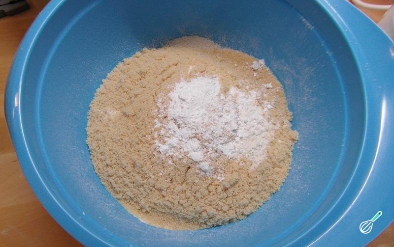 O primeiro passo para preparar seu bolo de laranja molhadinho é peneirar a farinha e o açúcar para uma tigela grande e adicionar o fermento. Mexa ligeiramente para misturar esses ingredientes.