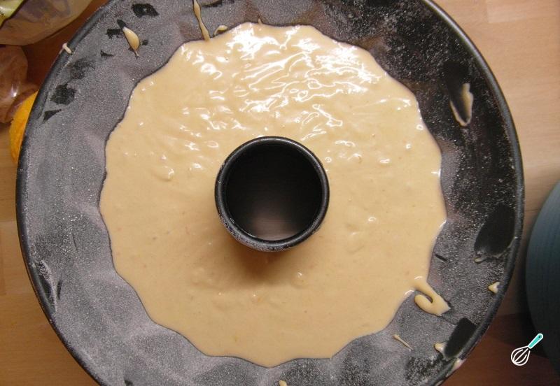 Por fim adicione as raspas de laranja e misture. Verta a massa para uma forma de bolo devidamente untada e enfarinhada e leve a assar no forno pré-aquecido a 180ºC durante 30 a 40 minutos.