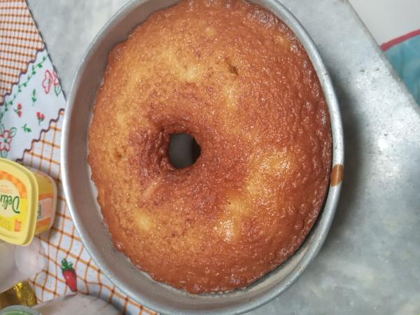 Dica: Recomendamos usar uma forma redonda, 22-24 cm de diâmetro, com furo no meio.