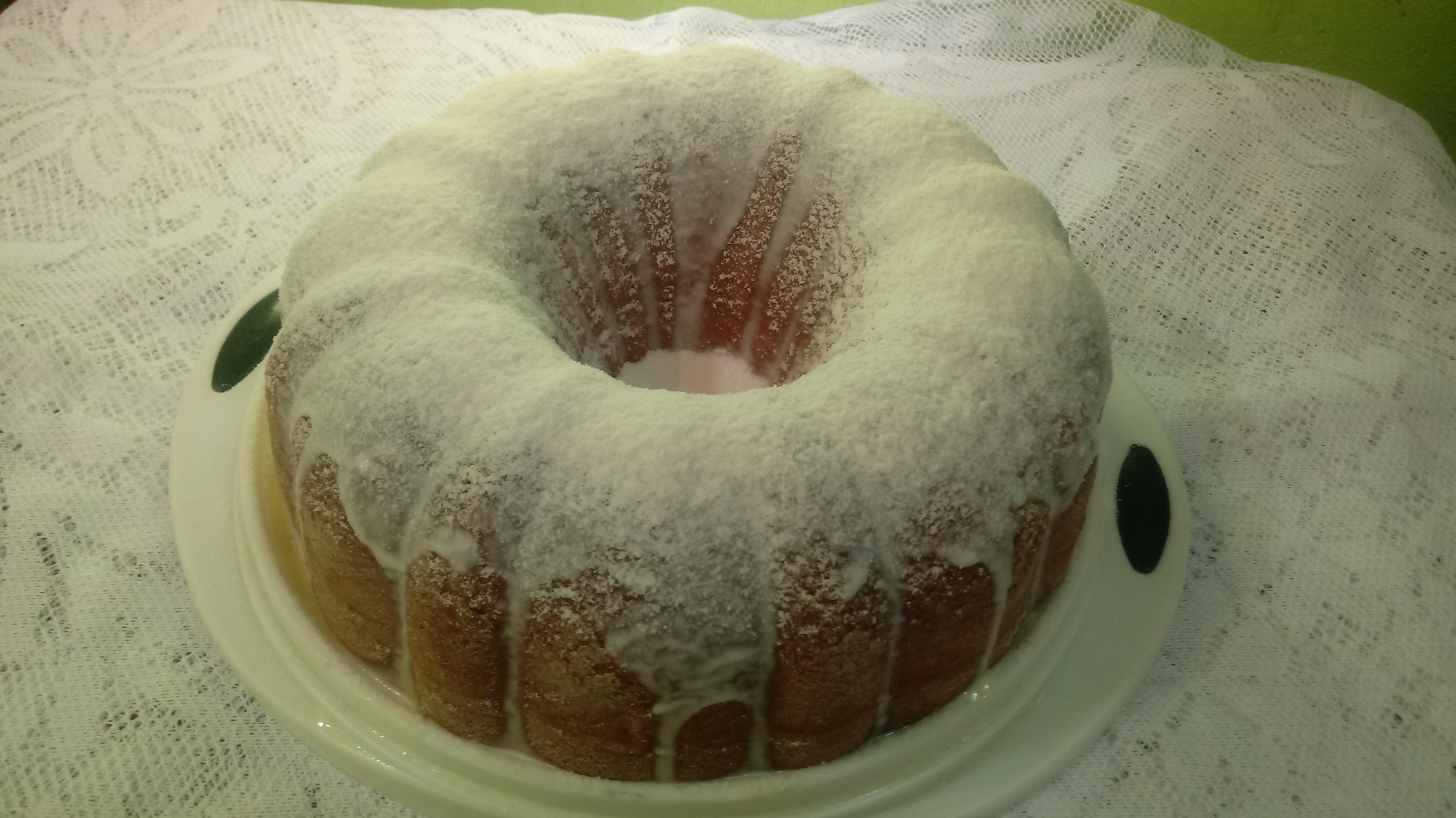 Fiz este bolo e assei numa forma retangular. Fiz a cobertura com açúcar de confeiteiro e gotas de limão. O bolo em si é uma delícia e a cobertura de limão contrastou com o doce. Ficou maravilhoso.