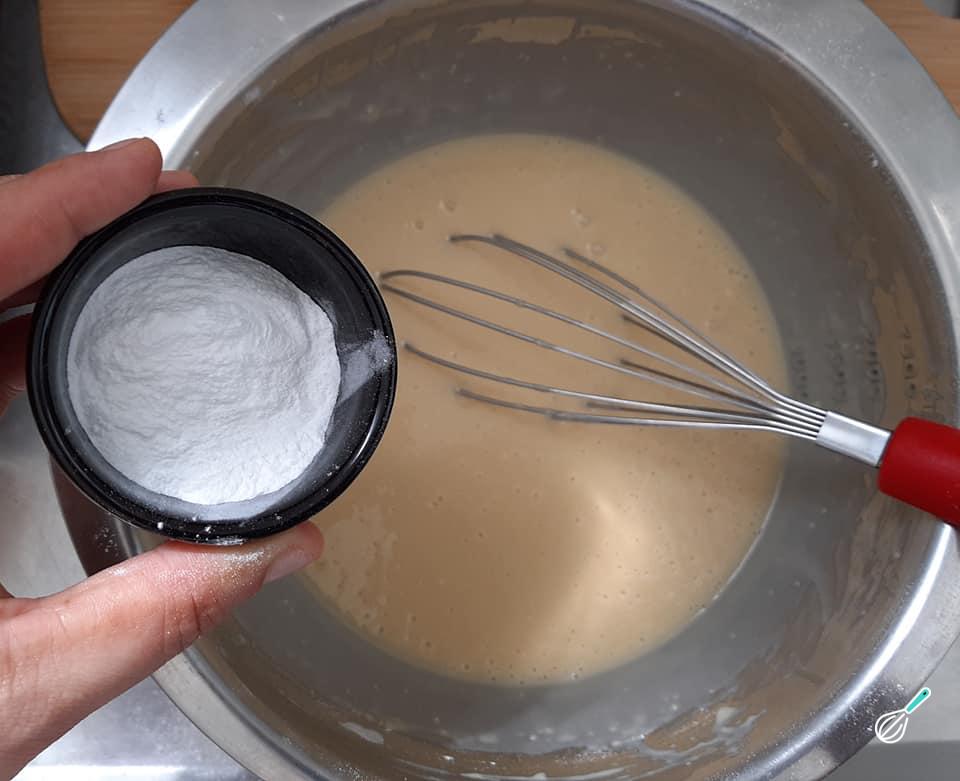 Junte o fermento em pó por último e incorpore-o à massa delicadamente.