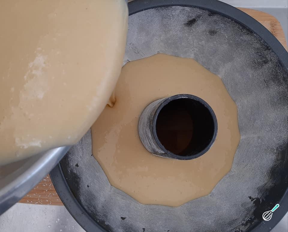 Dica: unte e enfarinhe uma forma com furo central com medidas de 20 x 8 cm.
