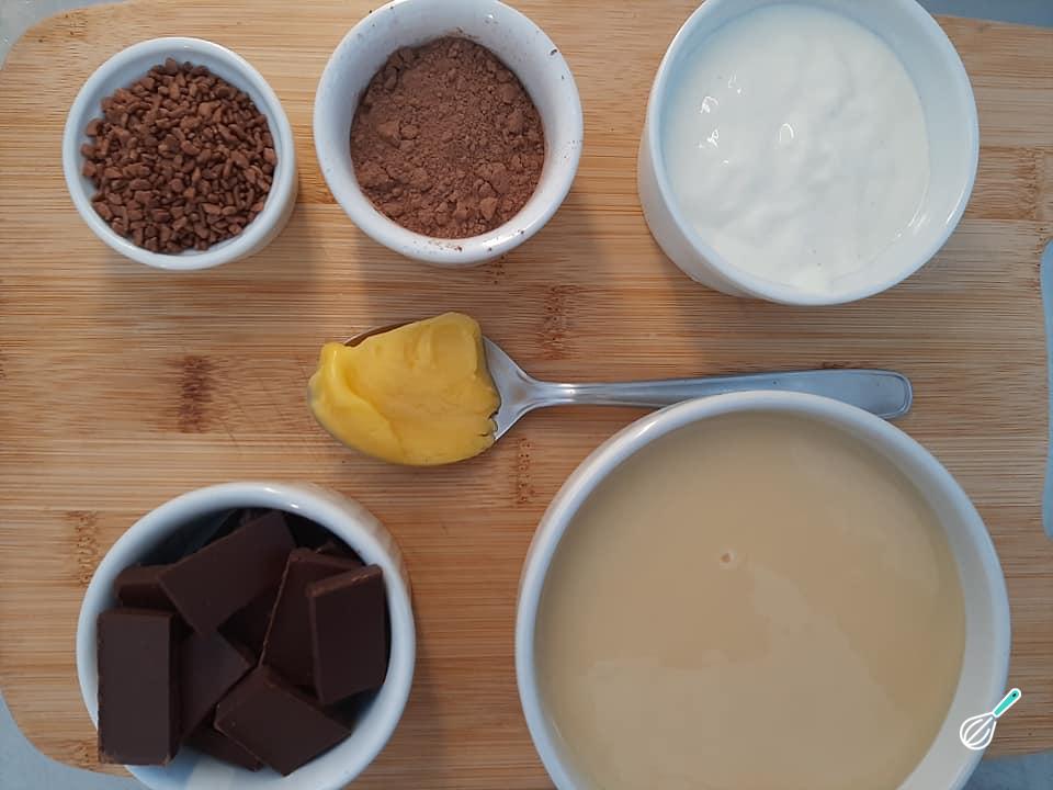 Enquanto o bolo de leite Ninho simples esfria, prepare a cobertura de chocolate. Separe todos os ingredientes solicitados na lista.