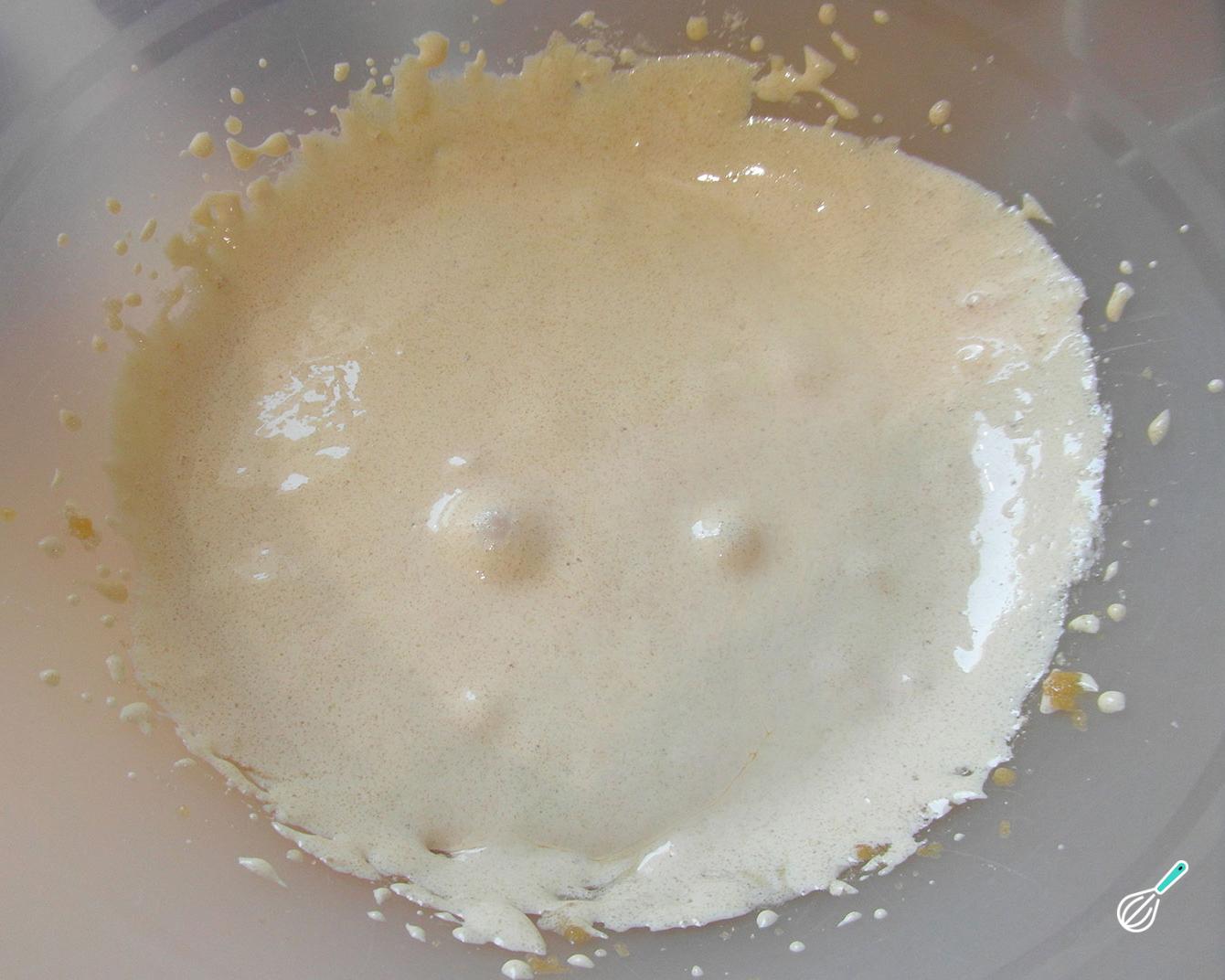 Dissolva o leite de Ninho no leite e adicione na mistura anterior. Misture bem e coloque a farinha peneirada aos poucos, enquanto incorpora sem bater.