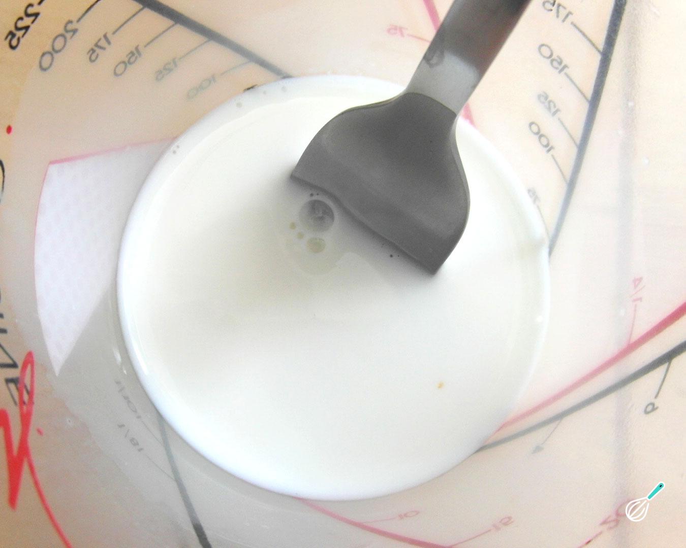 Retire o bolo do forno e deixe esfriar um pouco. Enquanto isso, misture o leite condensado com o leite, para obter a calda que vai deixar esse bolo de Ninho molhado.