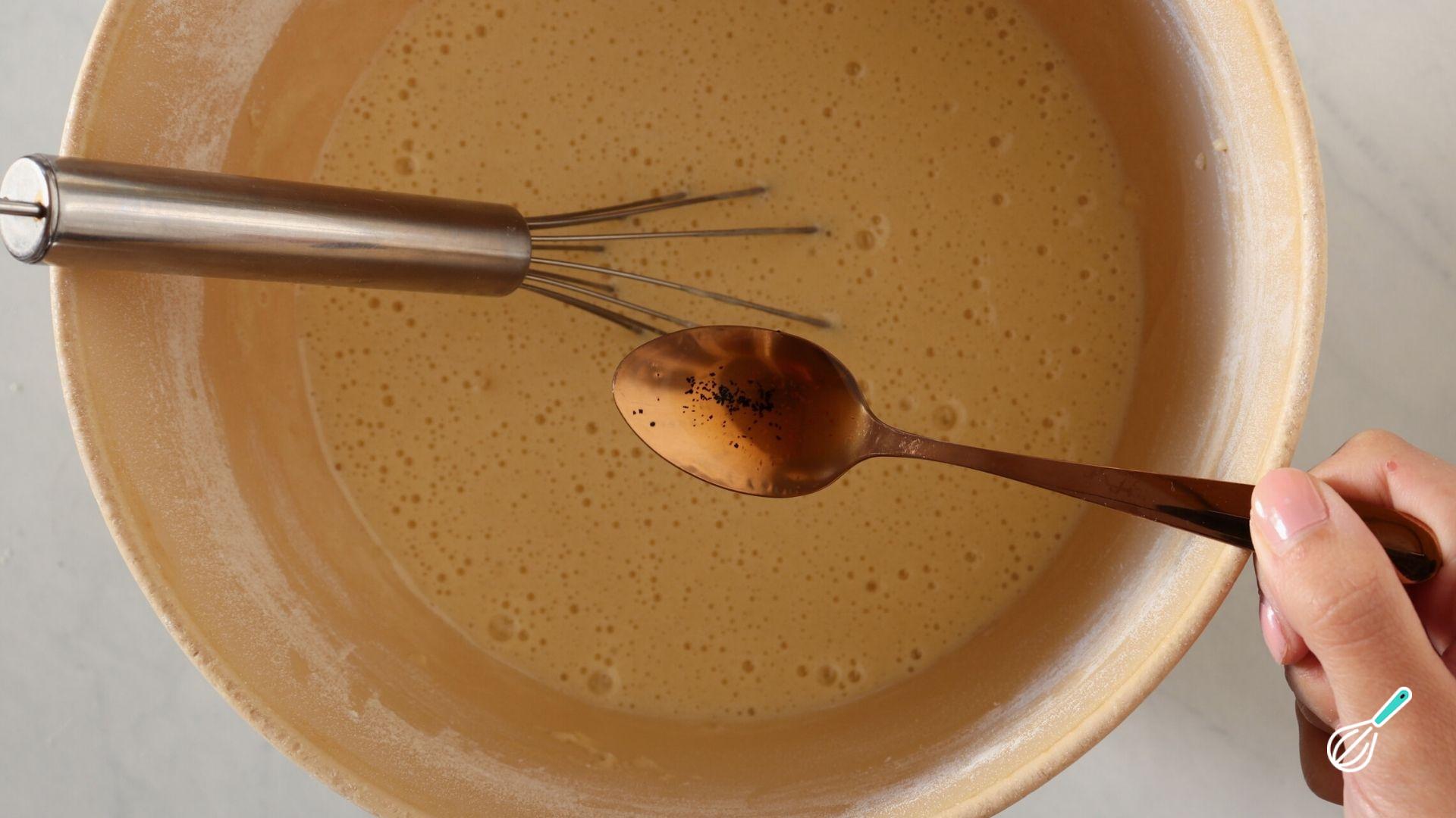 E finalize com o fermento, misturando delicadamente com um batedor de arame (fouet).