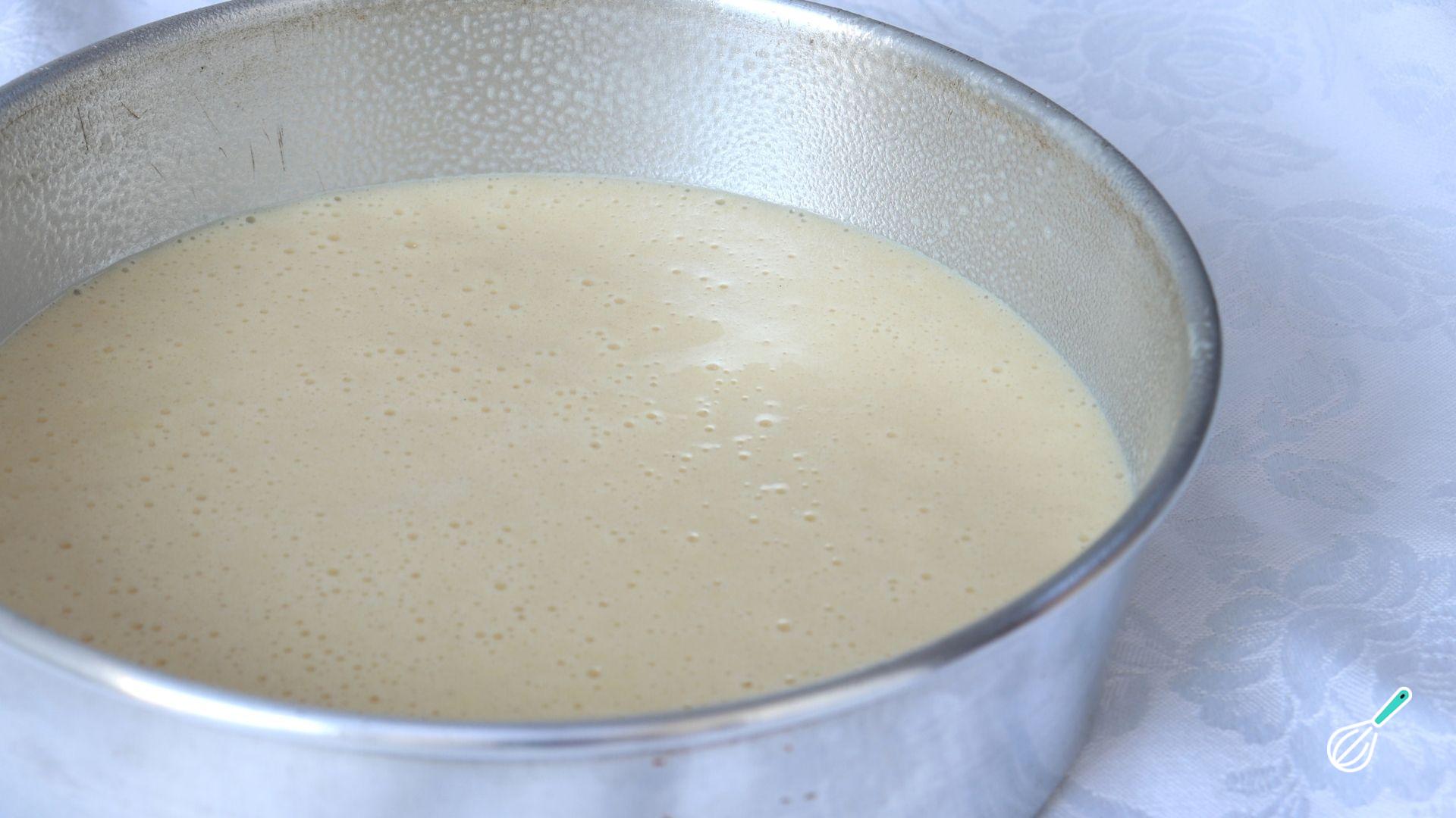 Despeje a massa deste bolo de leite em uma forma untada com manteiga e enfarinhada ou, como eu fiz, com um desmoldante. Leve para assar em forno pré-aquecido a 180 graus por mais ou menos 30 minutos ou espete um palito no centro da massa para verificar - se sair seco, seu bolo está pronto!