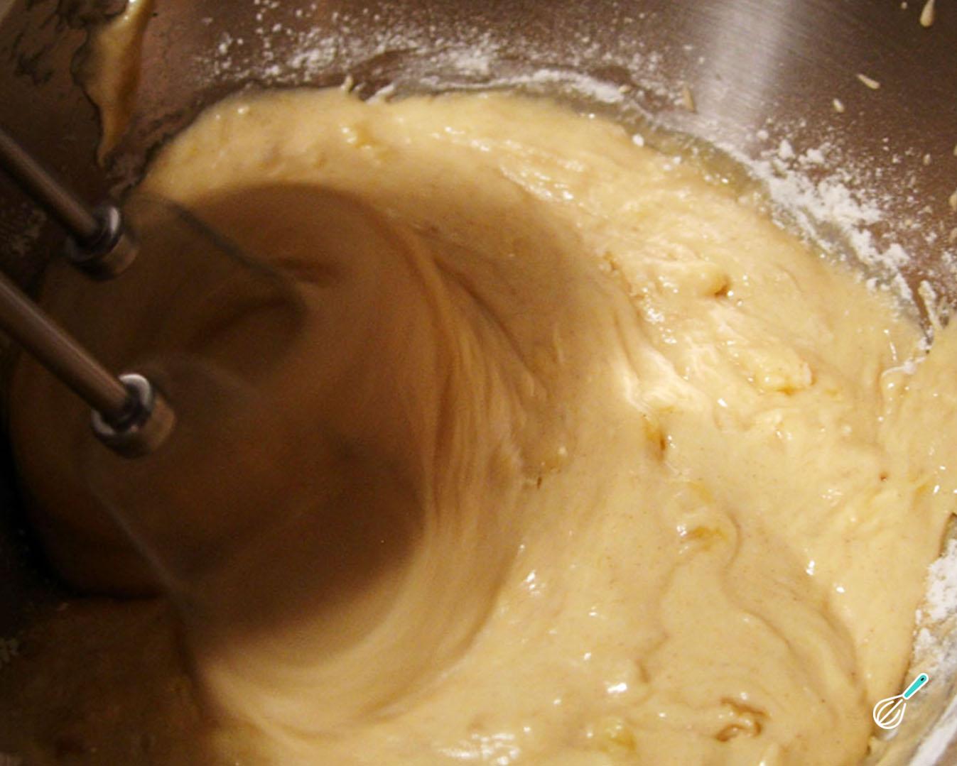Em seguida coloque em uma batedeira os ovos, o açúcar, o leite, o óleo, a farinha e a gelatina. Bata bem até a massa ficar bem misturada. Após acrescente o fermento e dê uma leve batida para incorporar.
