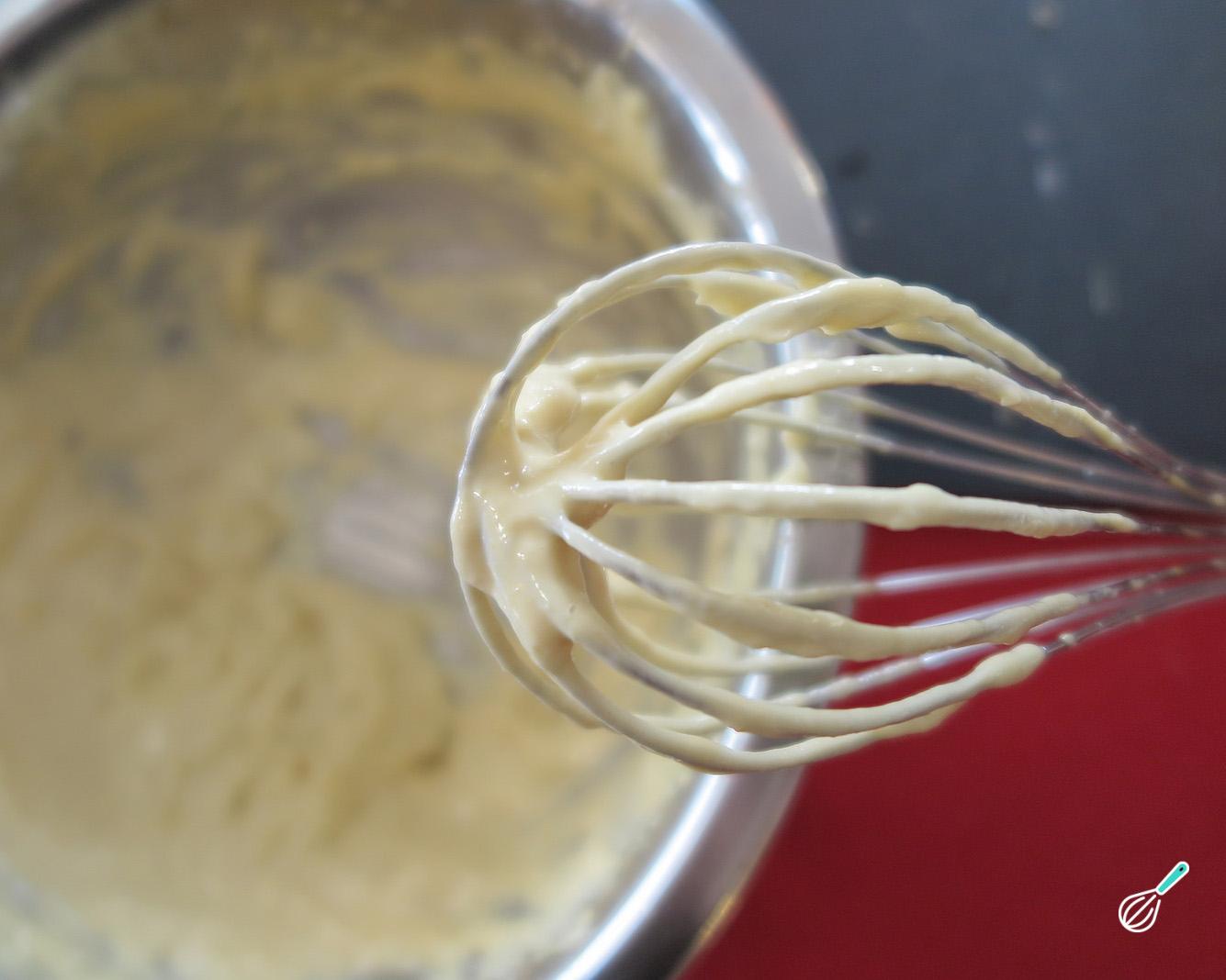 Enquanto o bolo de limão esfria, prepare a cobertura: coloque em uma travessa o leite condensado e acrescente aos poucos o suco do limão, mexendo bem com uma colher ou fouet até firmar. O ideal é conseguir uma consistência de mousse.