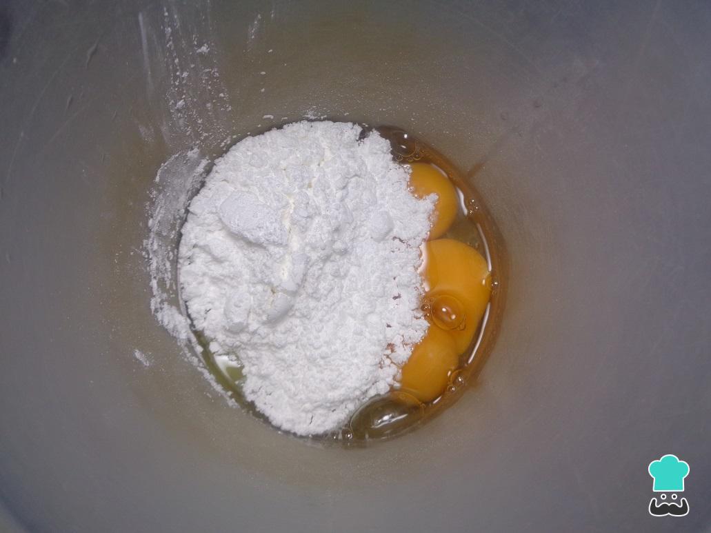Para começar a fazer o bolo de limão sem açúcar, coloque os ovos e o adoçante estévia em uma taça funda. Integre muito bem até não sobrarem grumos.